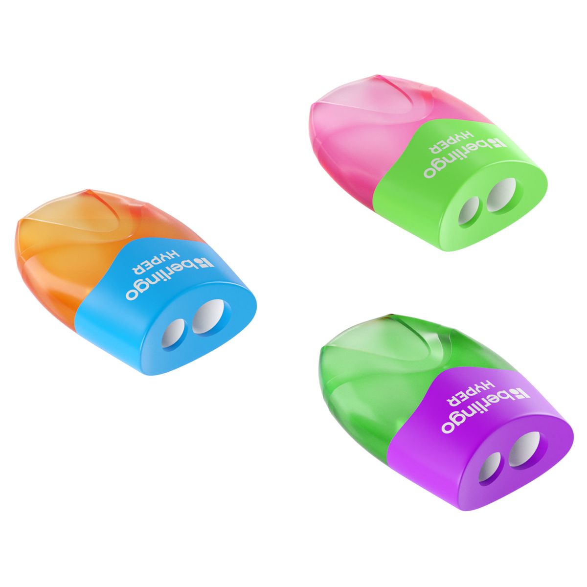 Точилка пластиковая Berlingo "Hyper" 2 отверстия, контейнер, ассорти