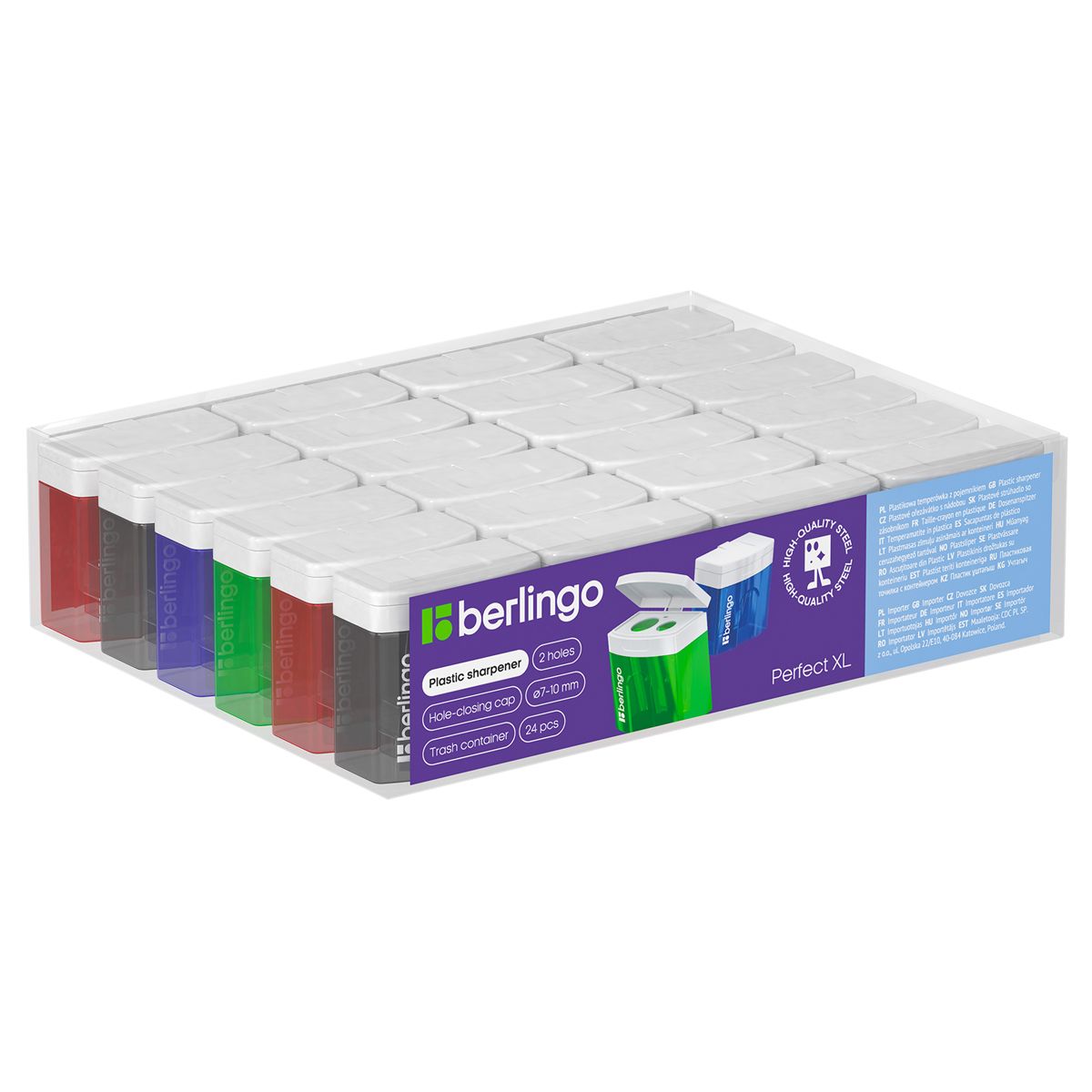 Точилка пластиковая Berlingo "Perfect XL" 2 отверстия, контейнер, ассорти