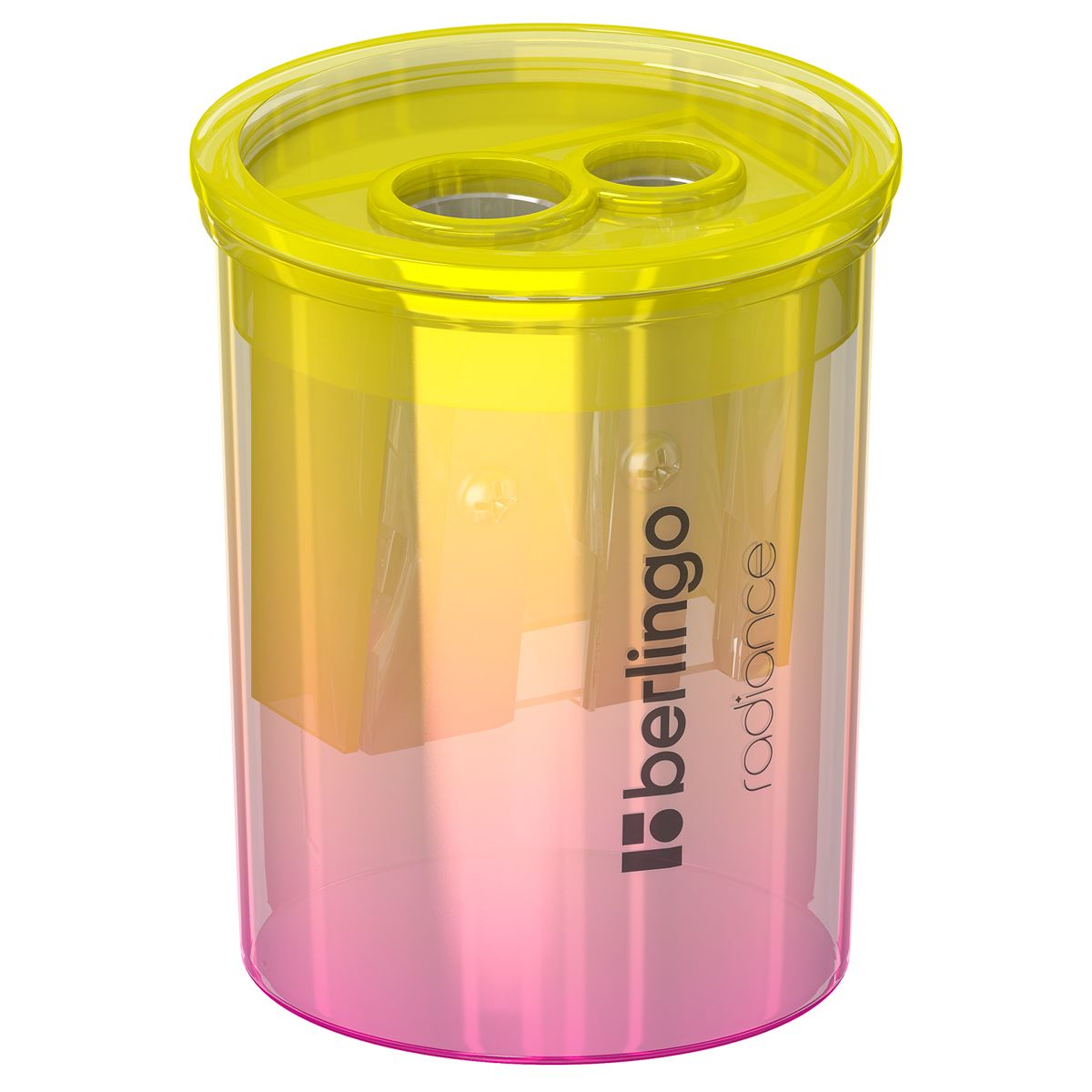 Точилка пластиковая Berlingo "Radiance" 2 отверстия, контейнер, ассорти