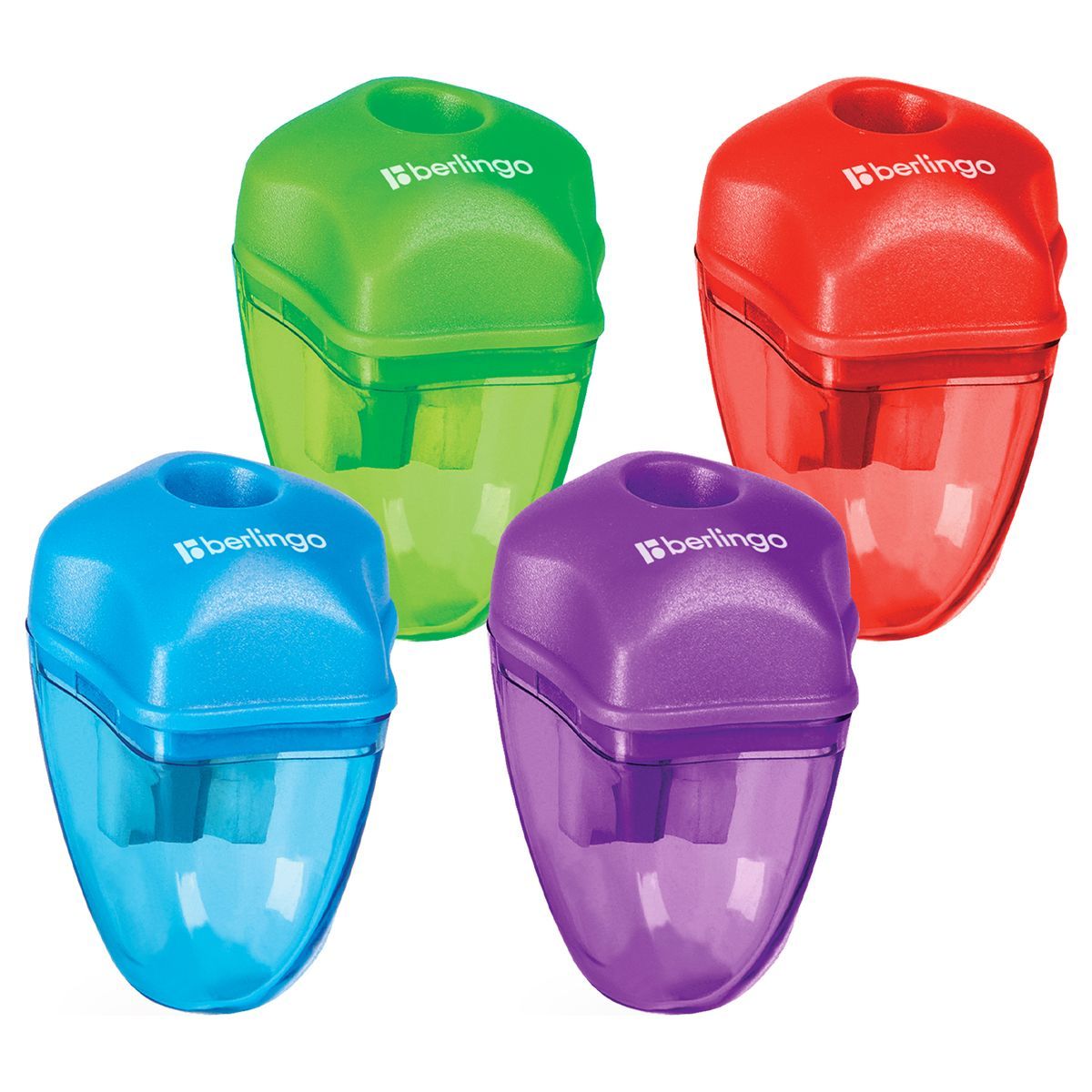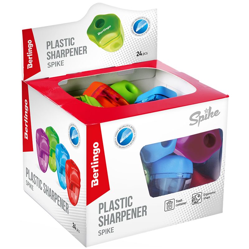 Точилка пластиковая Berlingo "Spike" 1 отверстие, контейнер, ассорти, дисплей