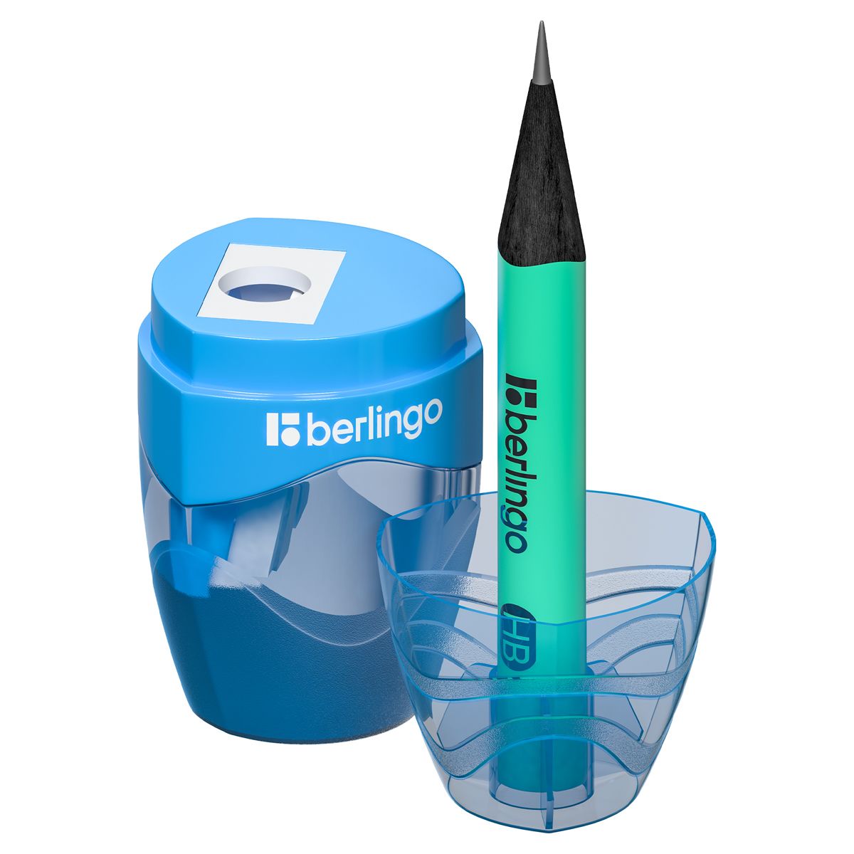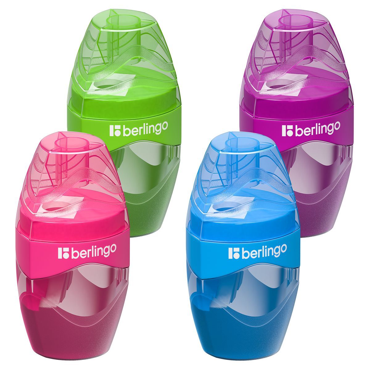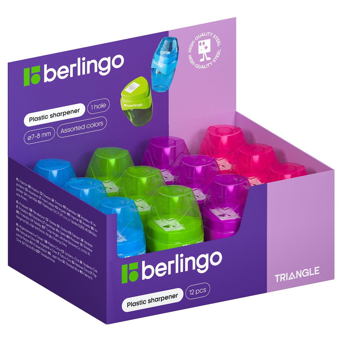Точилка пластиковая Berlingo "Triangle" 1 отверстие, контейнер, ассорти, дисплей