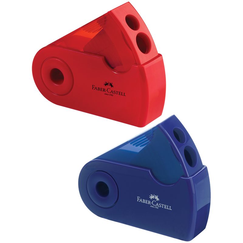 Точилка пластиковая Faber-Castell "Sleeve" 2 отверстия, контейнер, красная/синяя