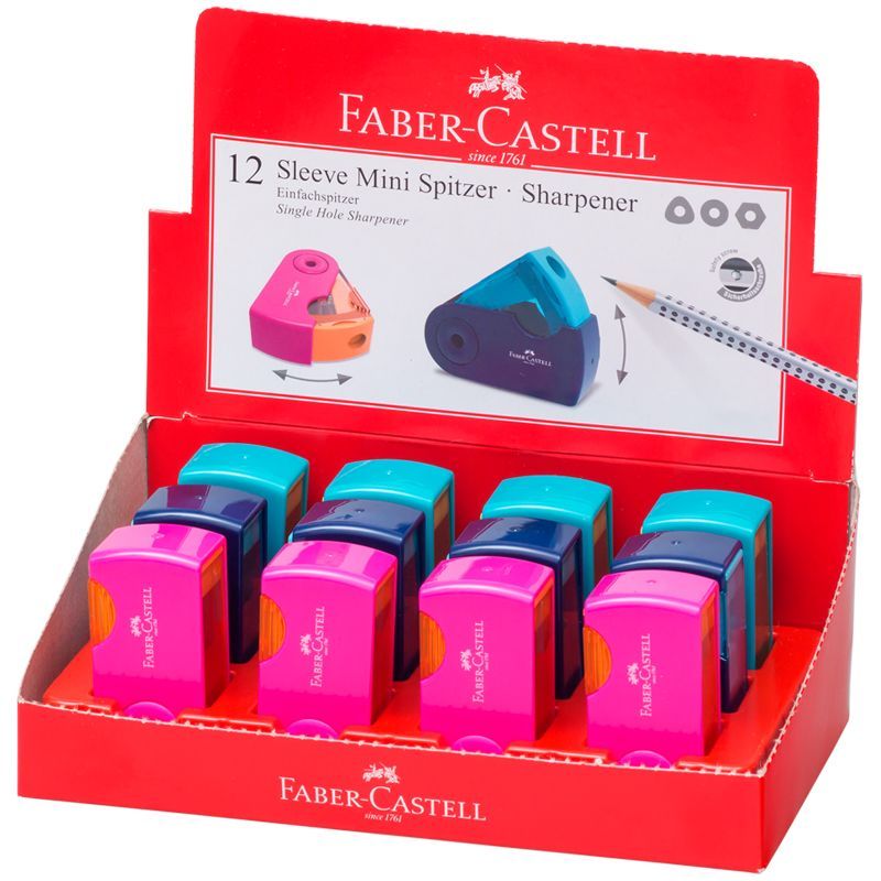 Точилка пластиковая Faber-Castell "Sleeve Mini" 1 отверстие, контейнер, розов./оранж., бирюзовая