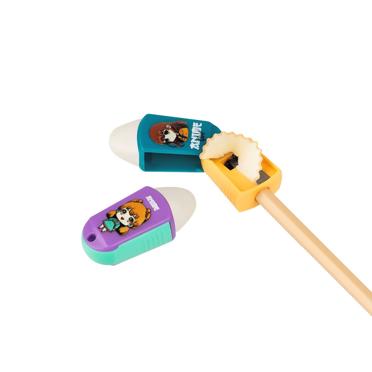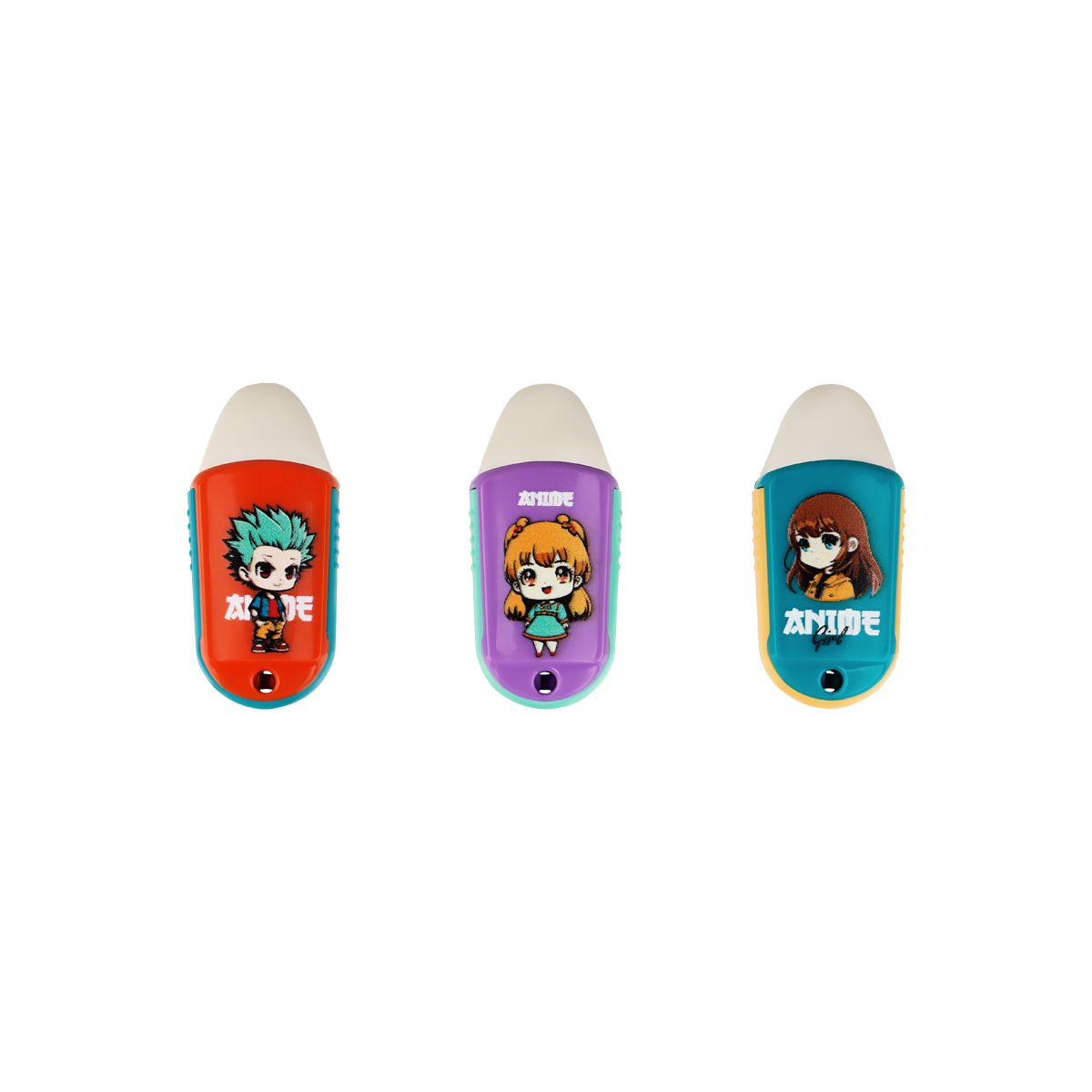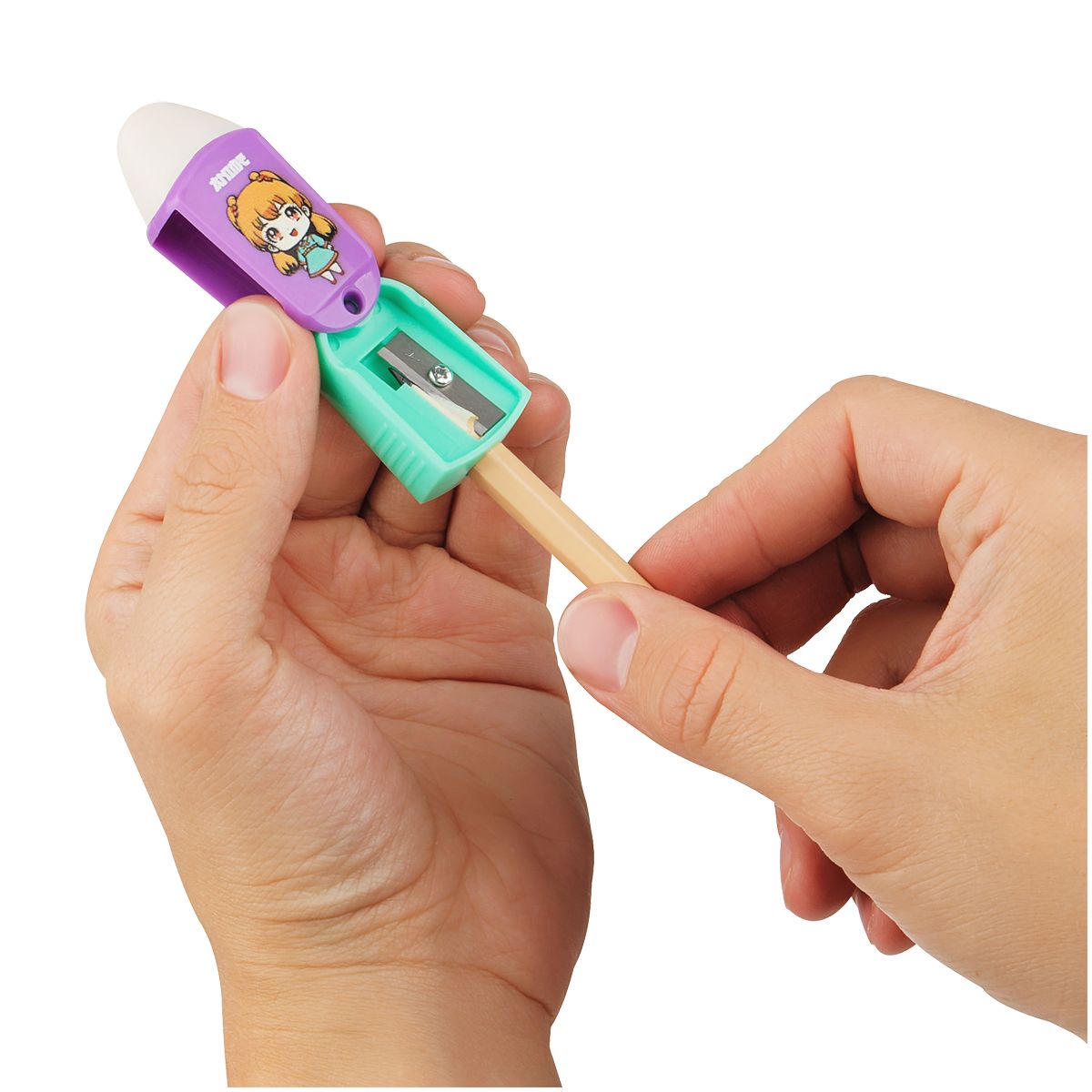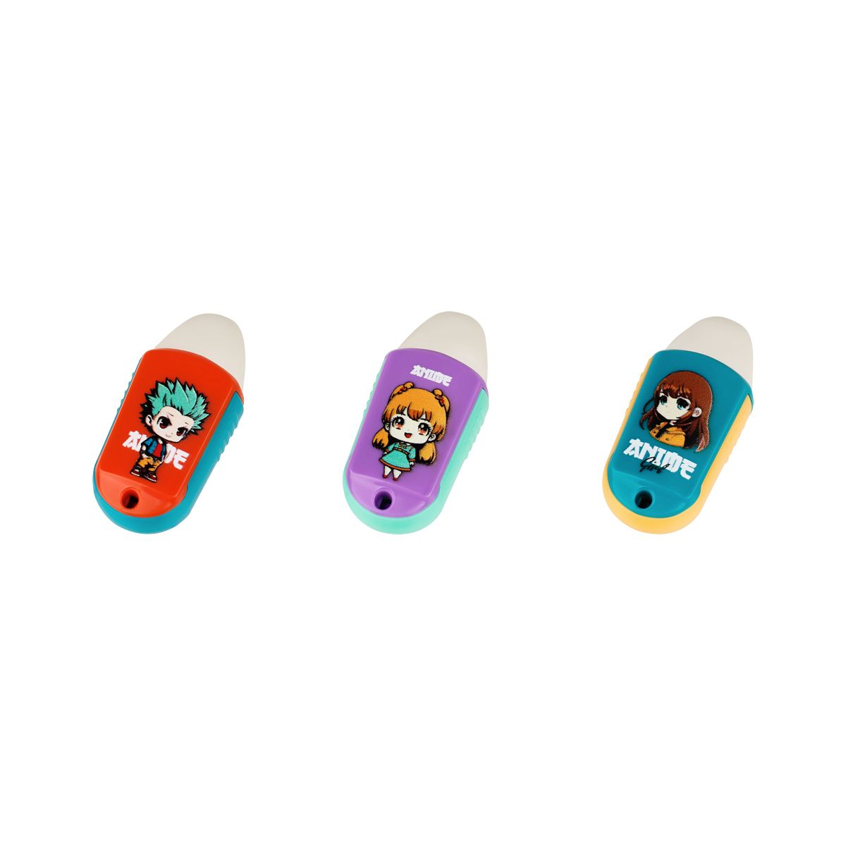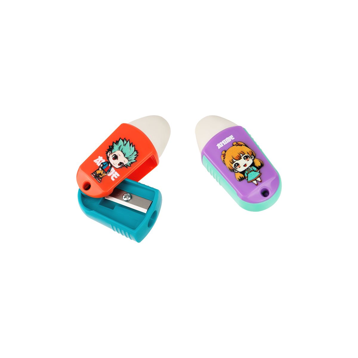 Точилка пластиковая с ластиком MESHU "Anime", 1 отверстие, ассорти