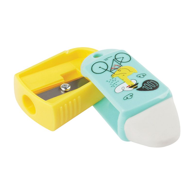 Точилка пластиковая с ластиком MESHU "Summer party" 1 отверстие, ассорти