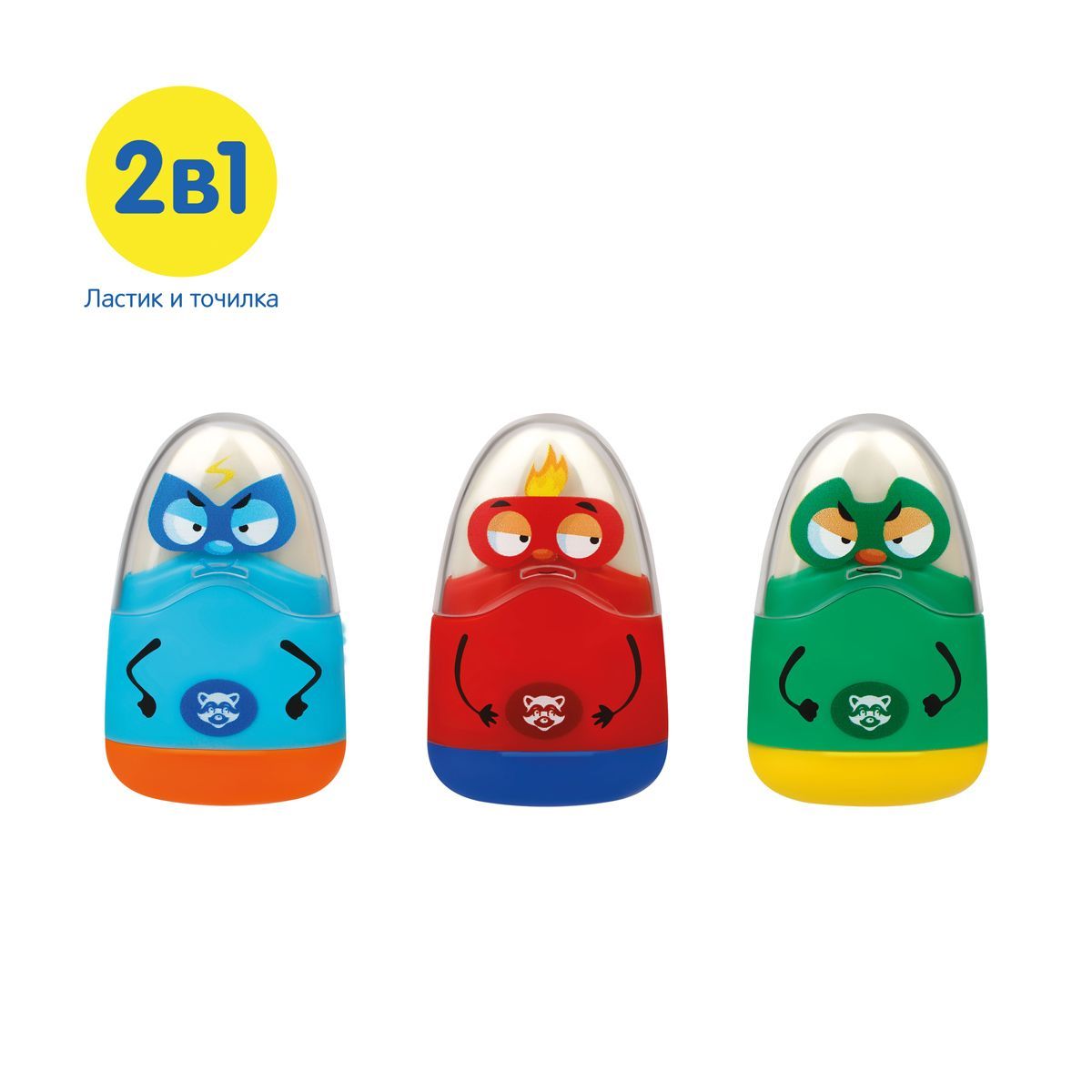 Точилка пластиковая с ластиком Мульти-Пульти "Супергерои" 1 отверстие, контейнер, ассорти