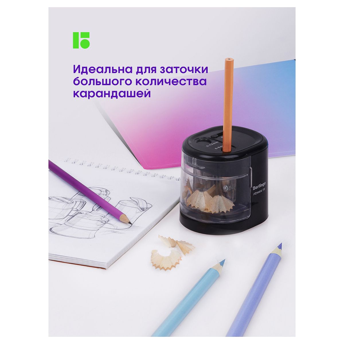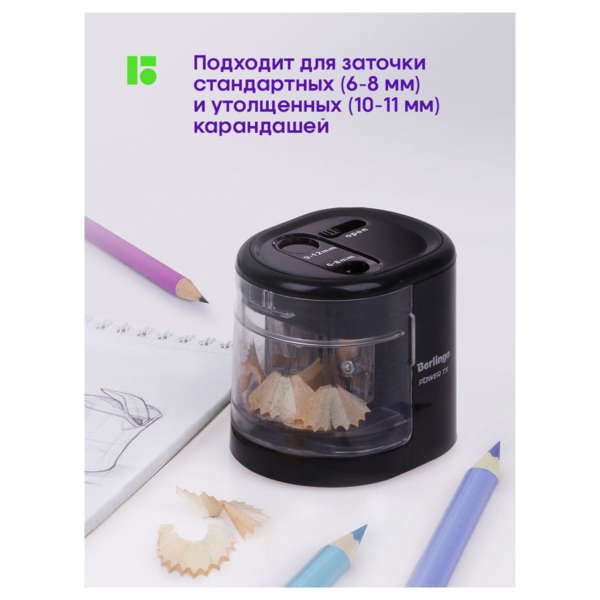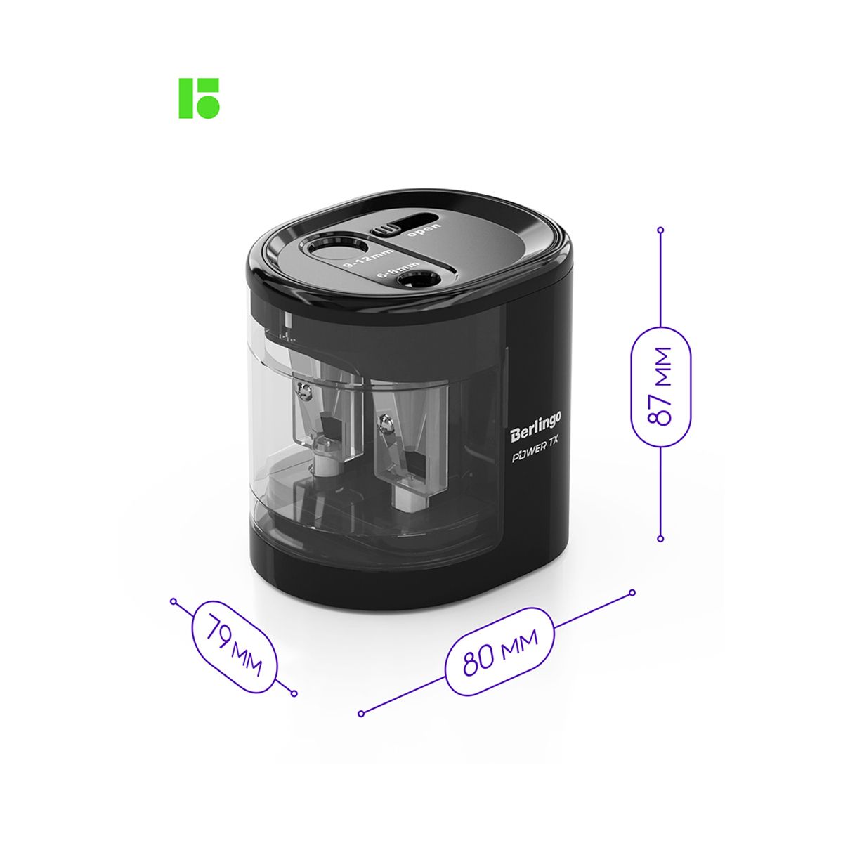 Точилка электрическая Berlingo "Power TX" 2 отверстия, черная, с контейнером, картон. упаковка