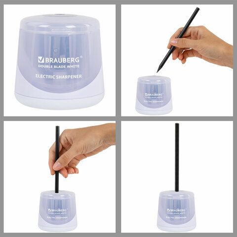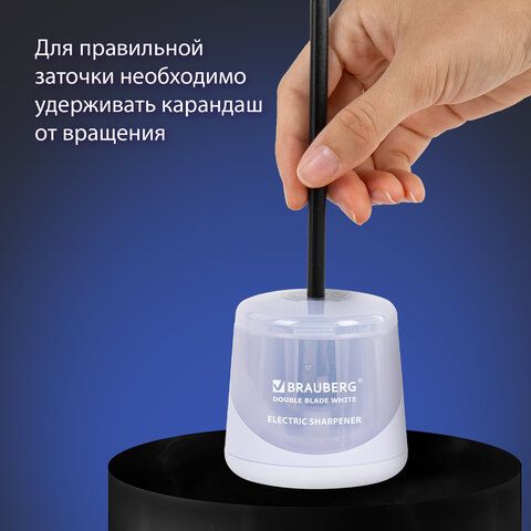 Точилка электрическая BRAUBERG DOUBLE BLADE WHITE, двойное лезвие, питание от 2 батареек, 271337