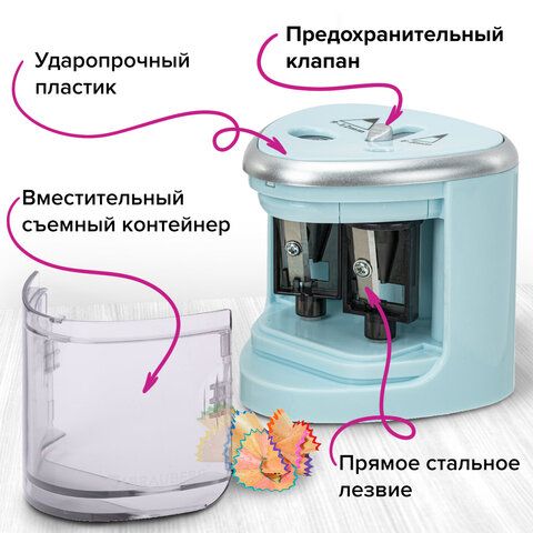 Точилка электрическая BRAUBERG DUAL (для 2 диаметров карандашей!), 4 батарейки АА, голубая, 270578