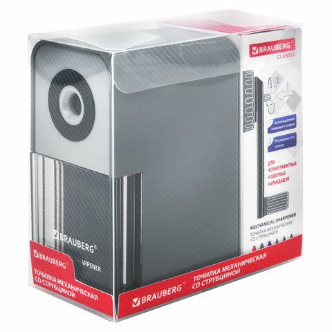 - Точилка BRAUBERG "Power", USB — компактная модель с мощным мотором и встроенным контейнером для стружки. Подходит для ежедневного использования в учебном классе.