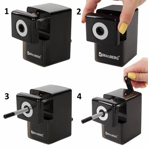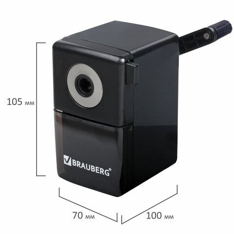 - Точилка BRAUBERG "Power", USB — компактная модель с мощным мотором и встроенным контейнером для стружки. Подходит для ежедневного использования в учебном классе.