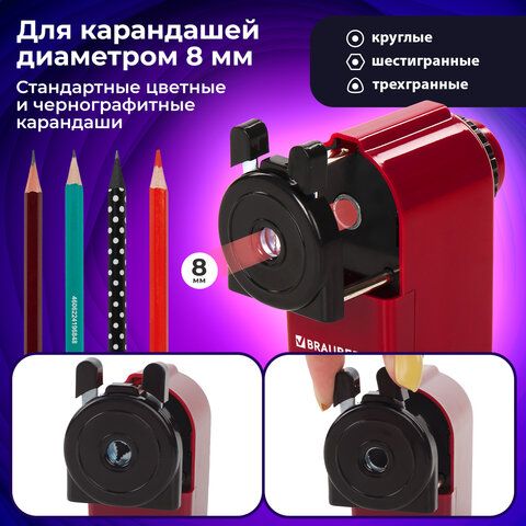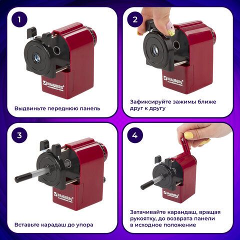 Точилка механическая BRAUBERG "JET", металлический механизм, черный/бордовый, 222517