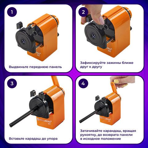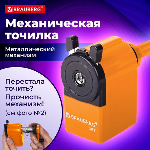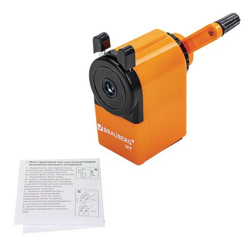 Точилка механическая BRAUBERG "JET", металлический механизм, корпус оранжевый, 229567
