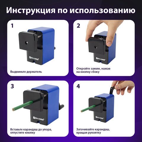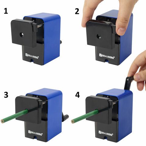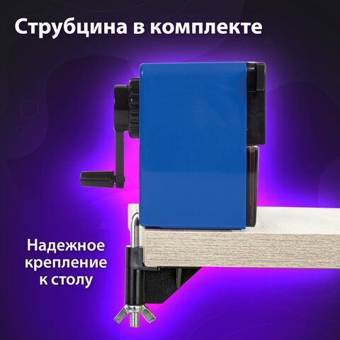 Точилка механическая BRAUBERG "UNIVERSAL", крепление к столу, металлический механизм, чёрный/синий, 222515