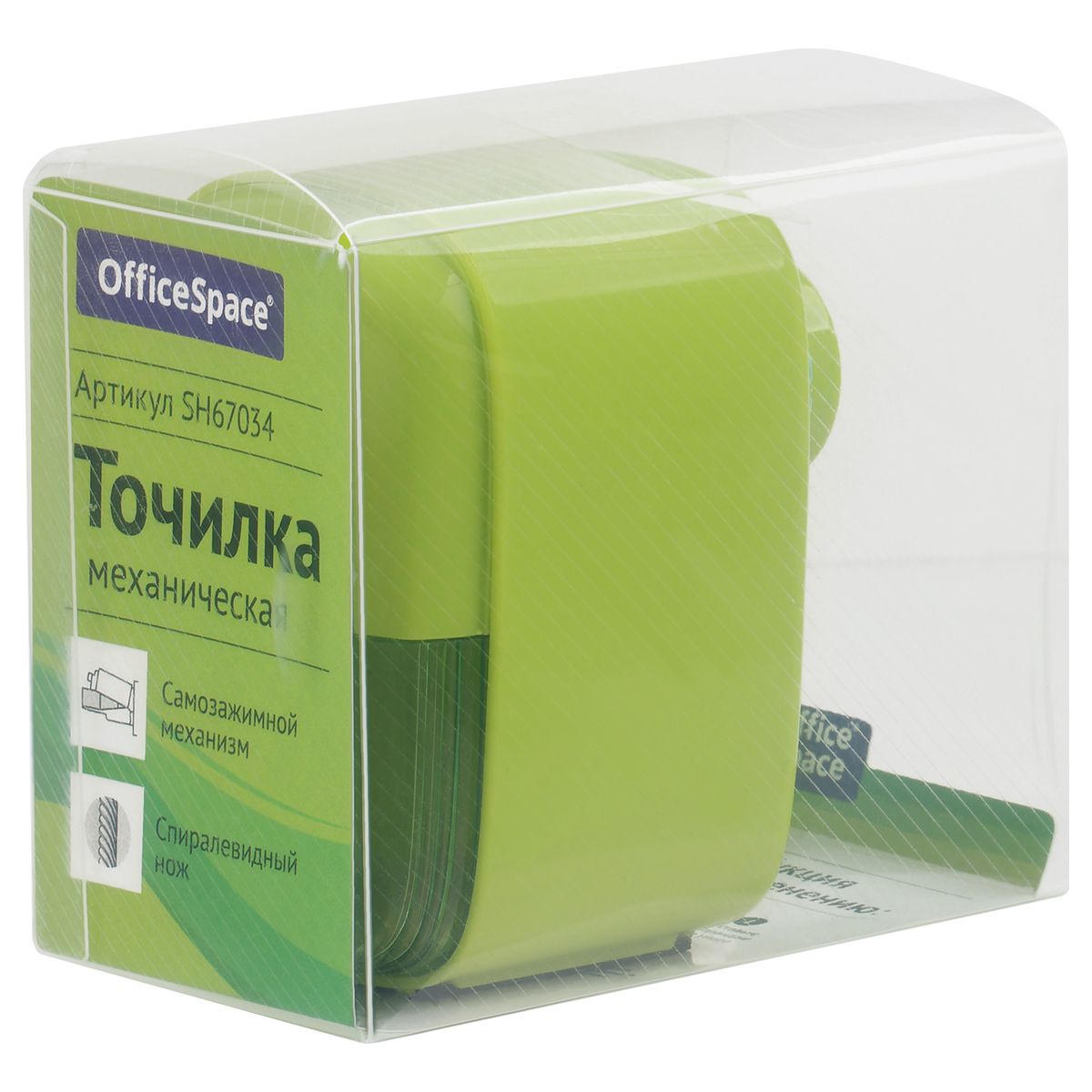 Точилка механическая OfficeSpace, пласт. корпус, зеленая, инд. упаковка