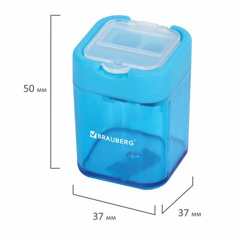 Точилка BRAUBERG "Peak", 2 отверстия для чернографитных карандашей (в том числе утолщенных), с контейнером, пластиковая, ассорти, 226945