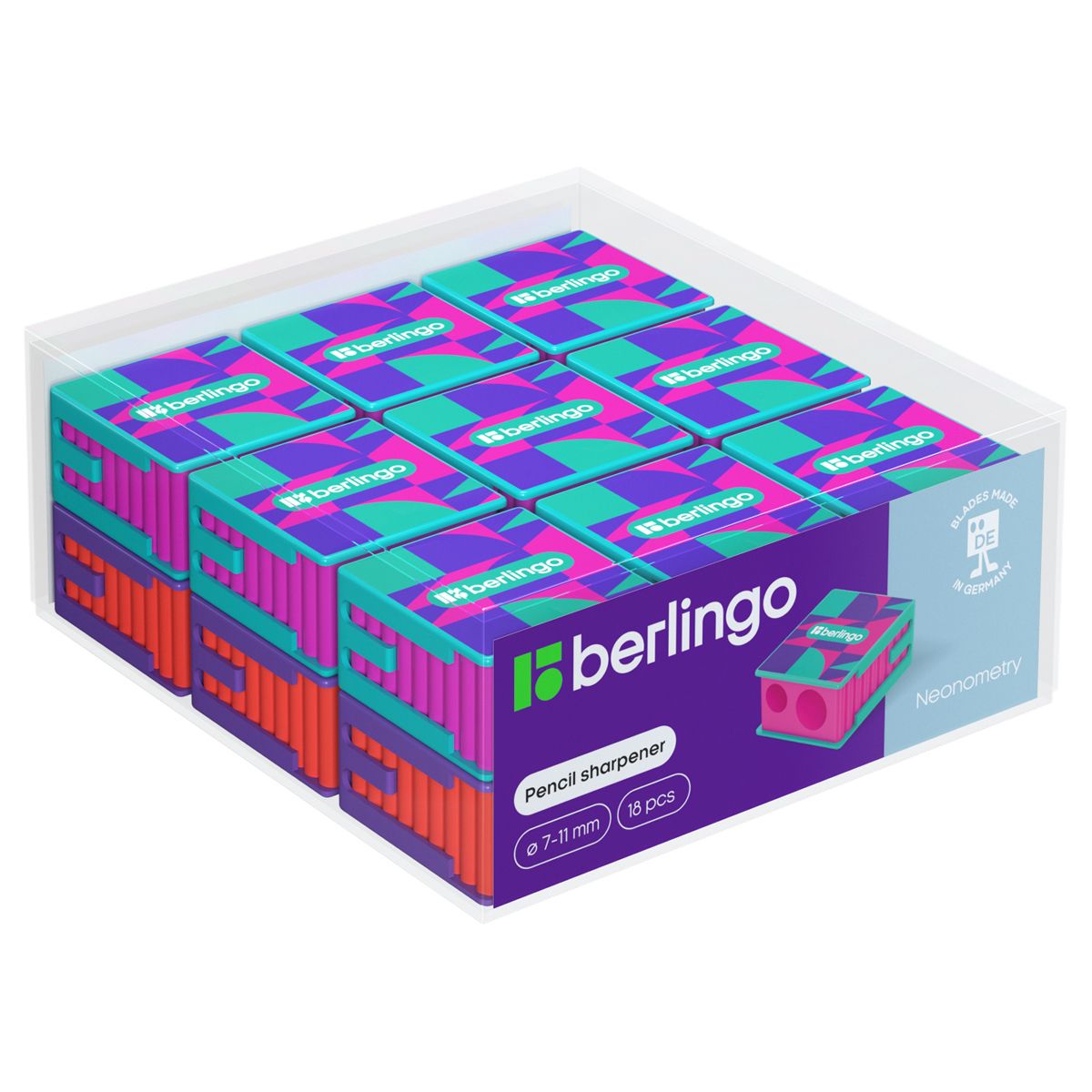 Точилка пластиковая Berlingo "Neonometry", с контейнером, 2 отверстия, ассорти