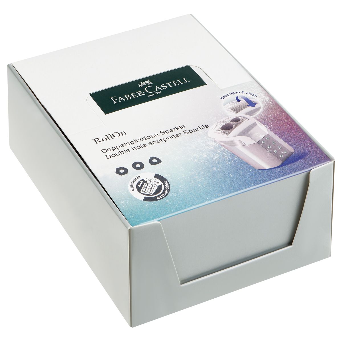 Точилка пластиковая Faber-Castell "Sparkle" 2 отверстия, контейнер, ассорти