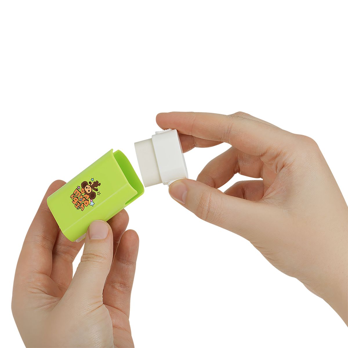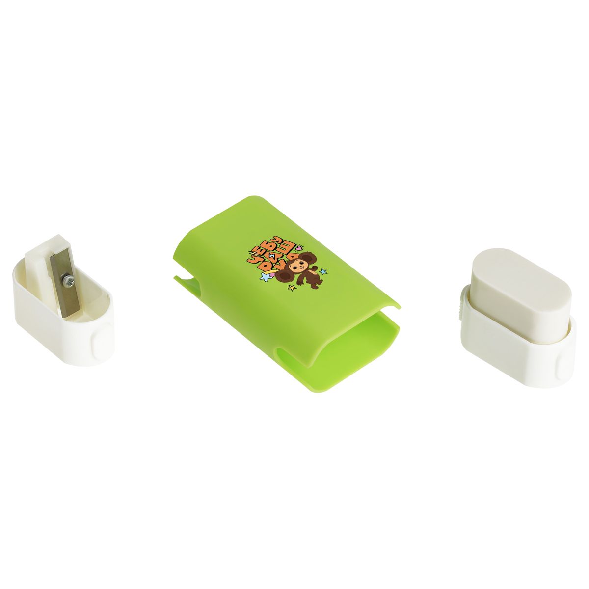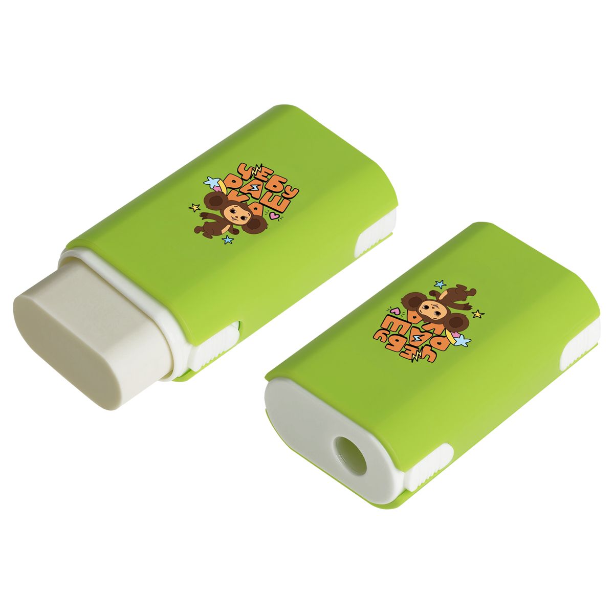 Точилка помогает сэкономить место в пенале. Корпус дополнительно вмещает ластик и контейнер для сбора стружки. Ластик отлично стирает надписи, сделанные чернографитным карандашом, не оставляет грязных разводов и не повреждает бумагу.