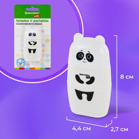 Точилка с ластиком 2 в 1 BRAUBERG KIDS "Панда", 2 отверстия, блистер, 271988