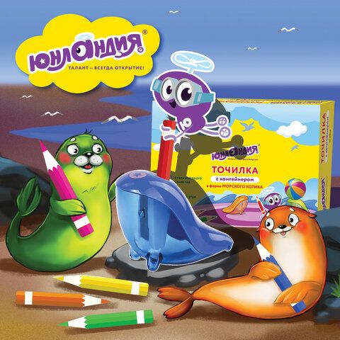 Точилка ЮНЛАНДИЯ "Морской котик", с контейнером, пластиковая, корпус ассорти, 228463