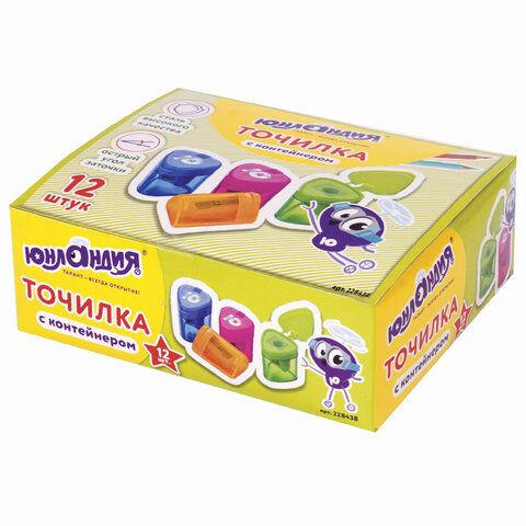 Точилка ЮНЛАНДИЯ "Трио", с контейнером, пластиковая, корпус ассорти, 228438
