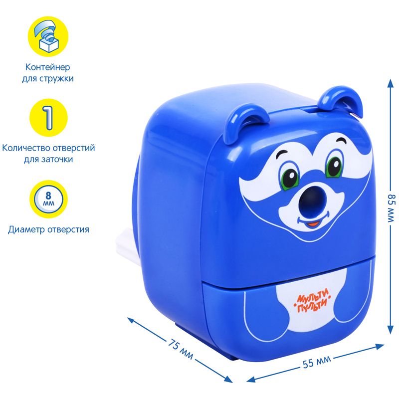 УЦЕНКА - Точилка механическая Мульти-Пульти "Енот", пласт. корпус, инд. упаковка (осн 245508)
