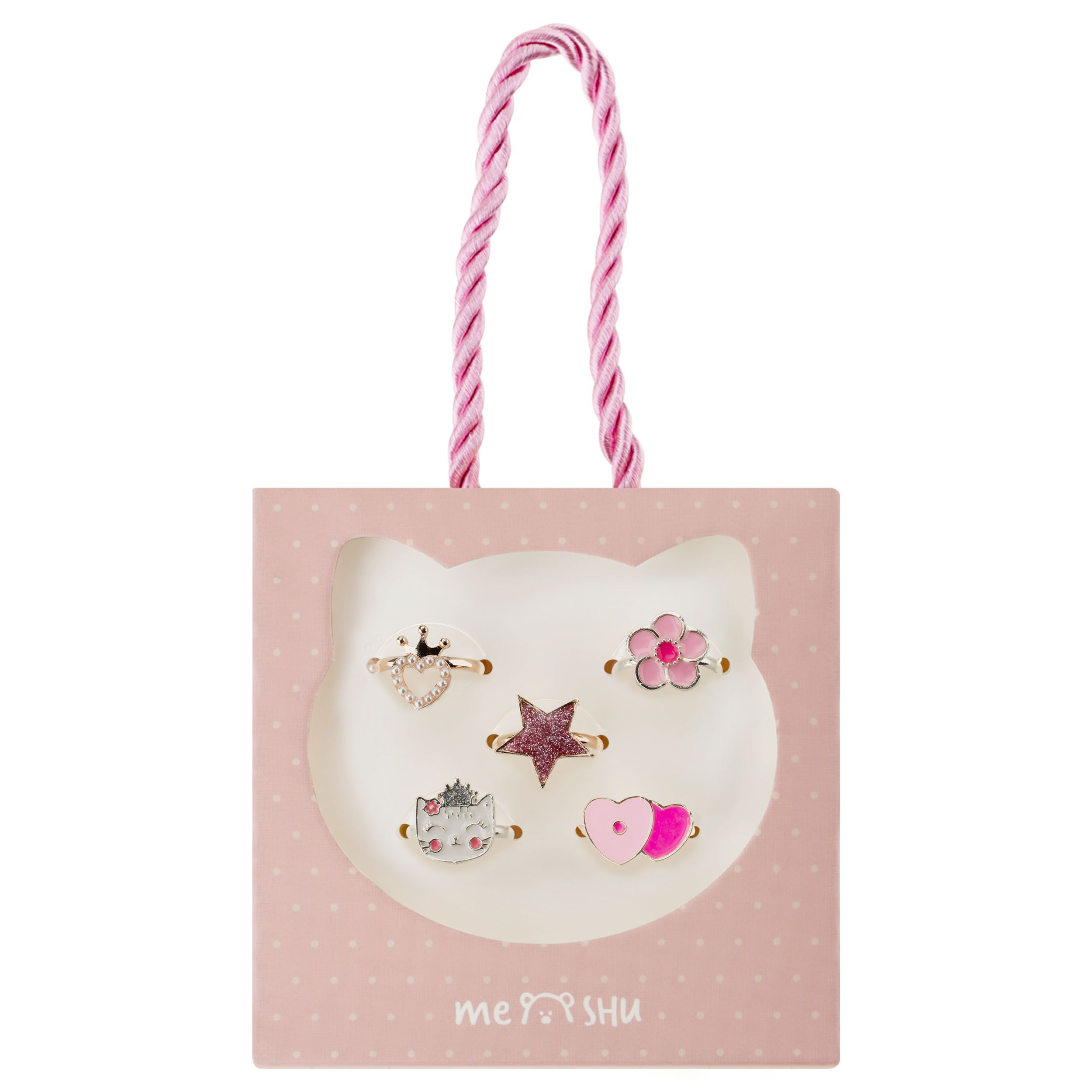 Набор колец MESHU "Superstar", бижутерия, 5шт., картонный бокс с ручкой