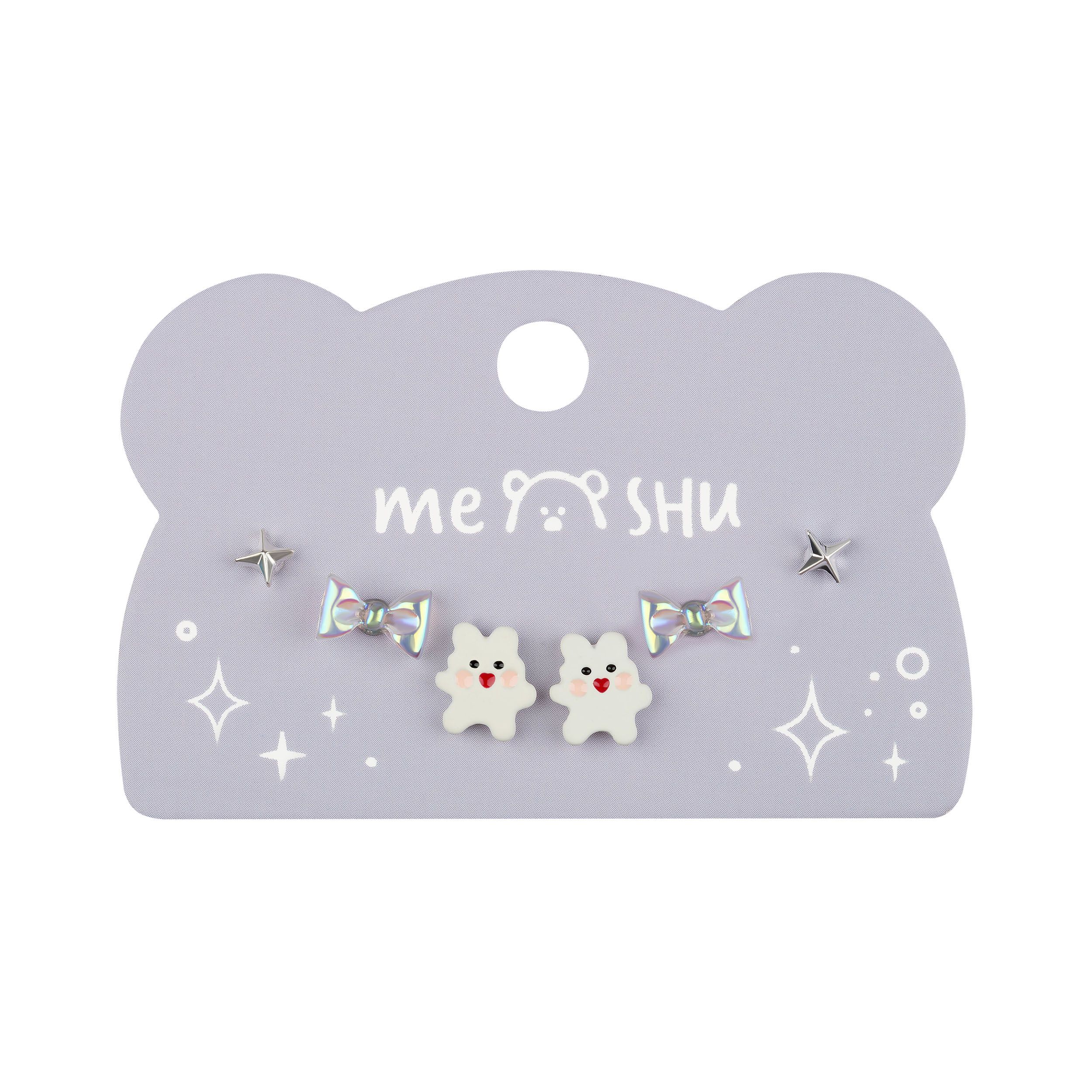 Серьги MESHU, бижутерия, серебристые, 3 пары, европодвес
