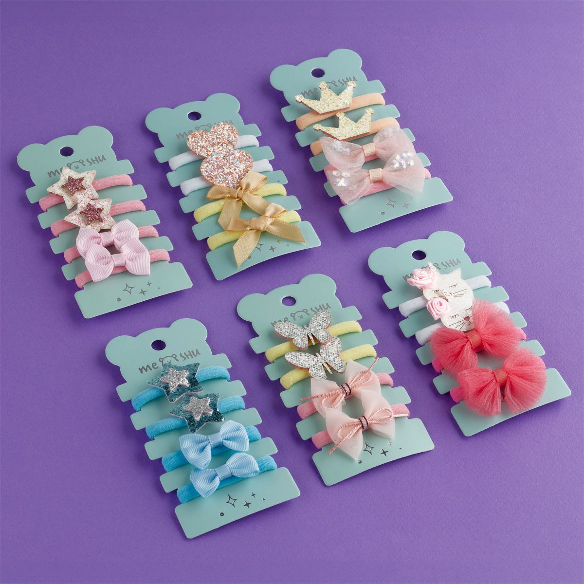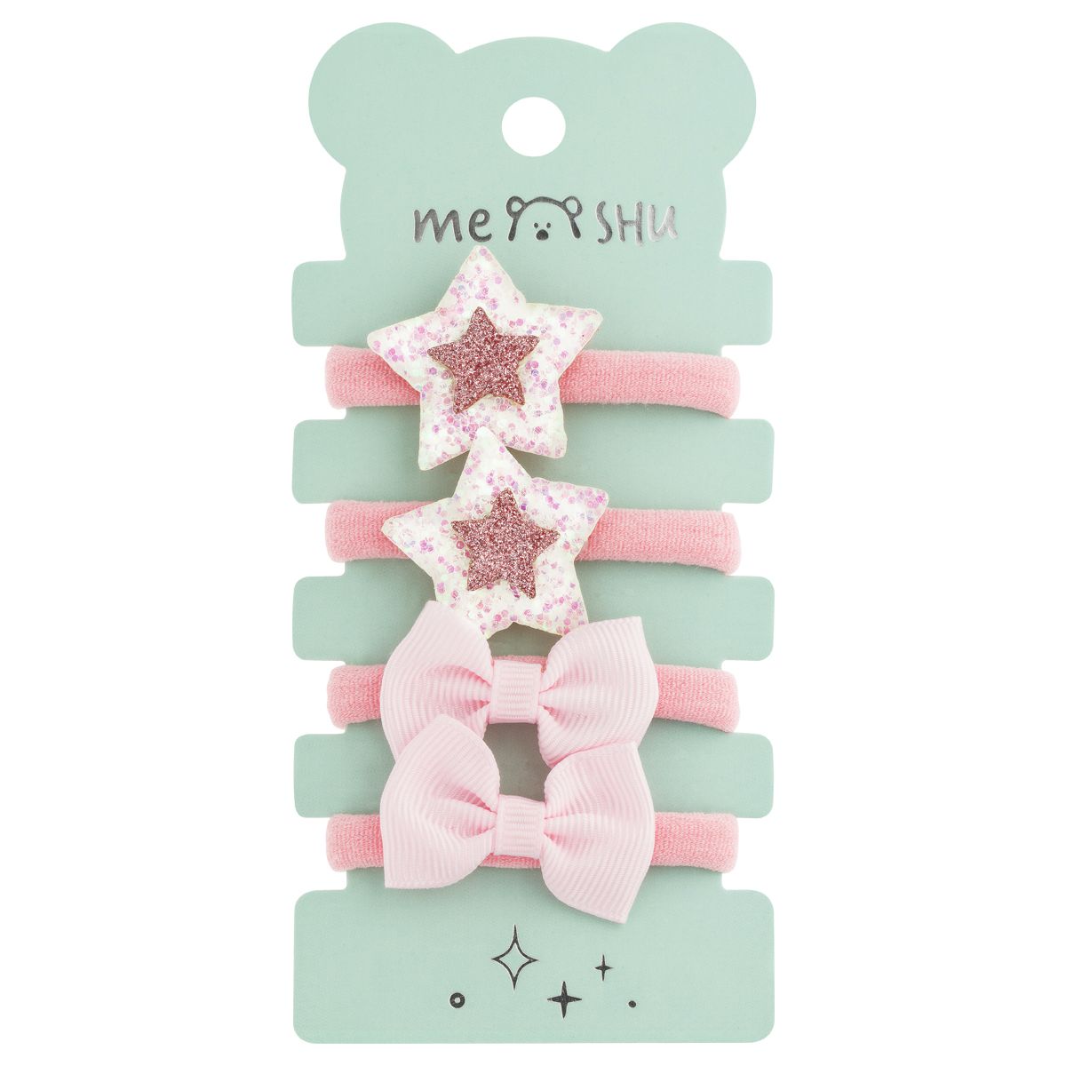 Резинки для волос MESHU, c текстильными топперами, ассорти, 4шт., европодвес