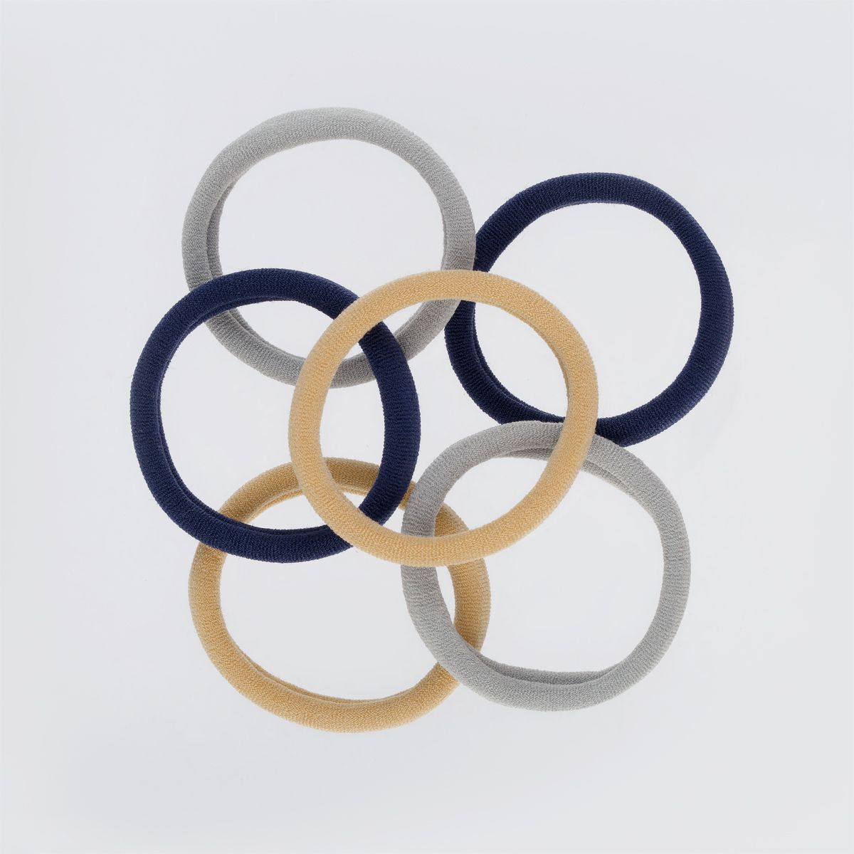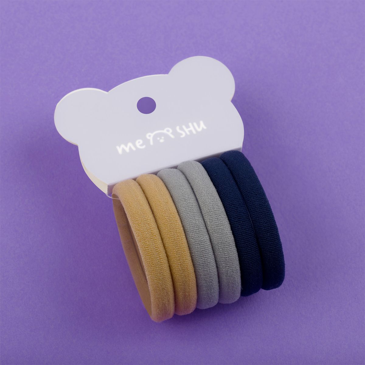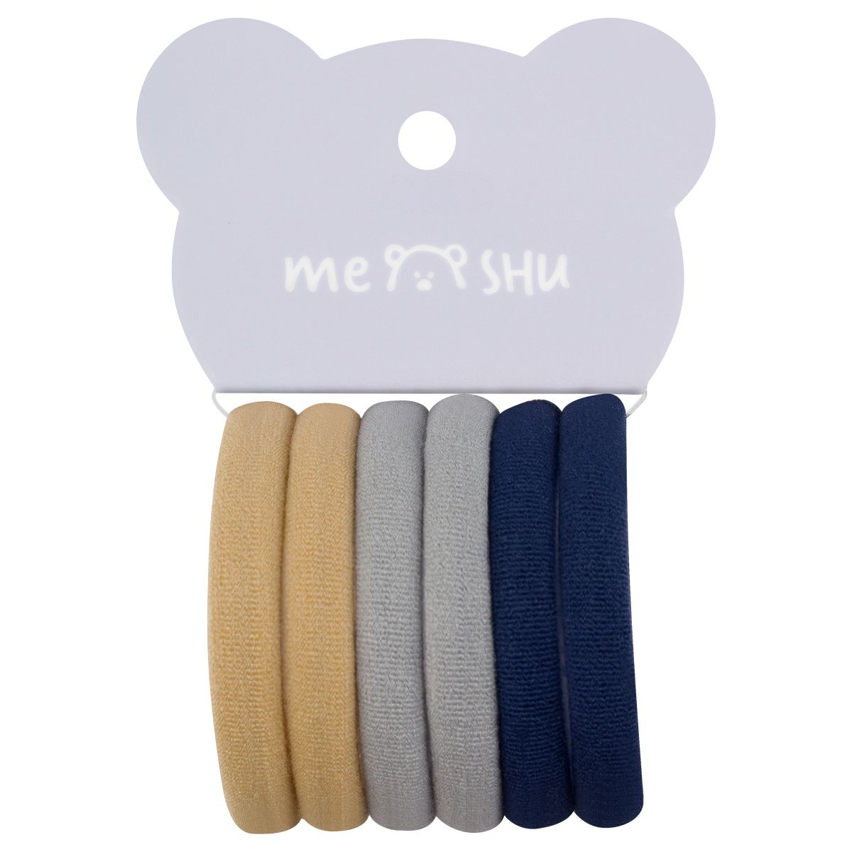 Резинки для волос MESHU "Essence", бежевые, серые, темно-синие, 6шт., диаметр 4см, европодвес