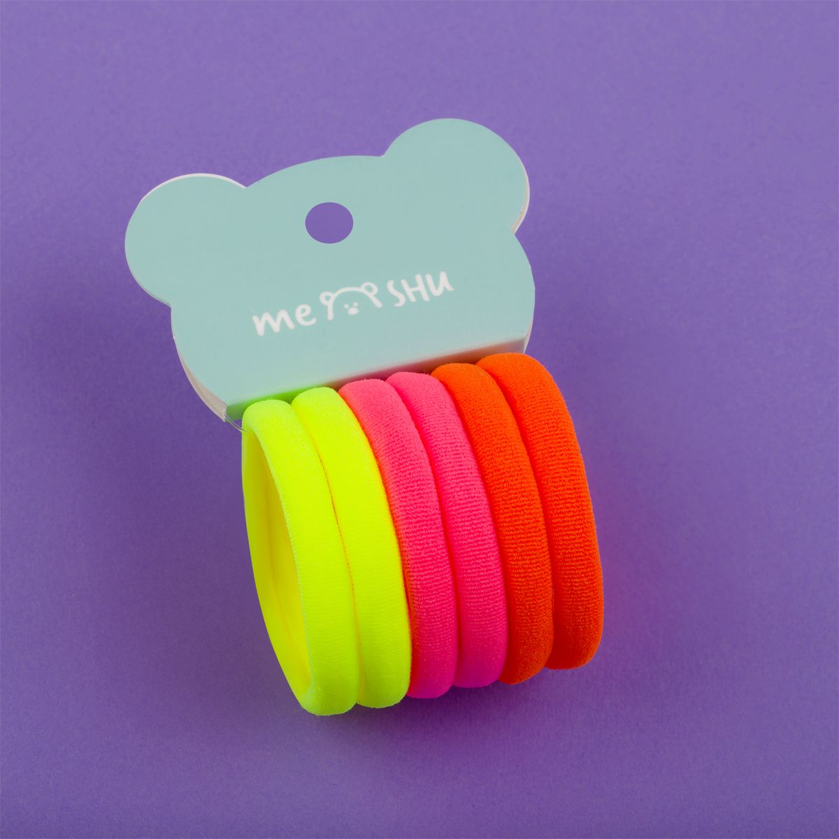 Резинки для волос MESHU "Essence", неоновые ассорти, 6шт., диаметр 4см, европодвес