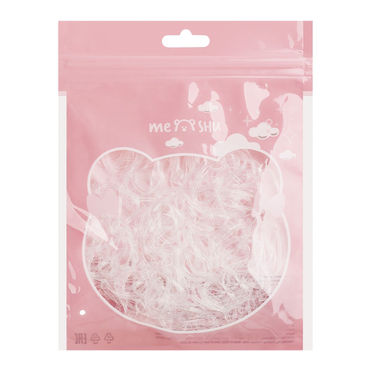 Резинки для волос MESHU, прозрачные, 300шт., диаметр 2см, европодвес