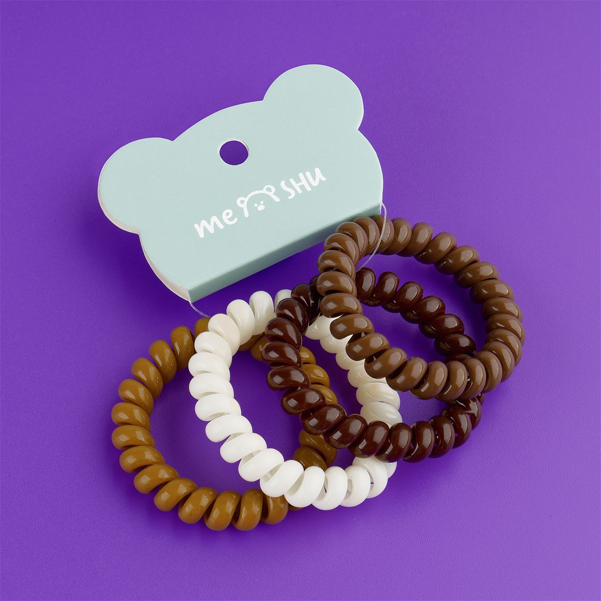 Резинки для волос MESHU, пружинки, коричневые ассорти, 4шт., диаметр 4,5см, европодвес
