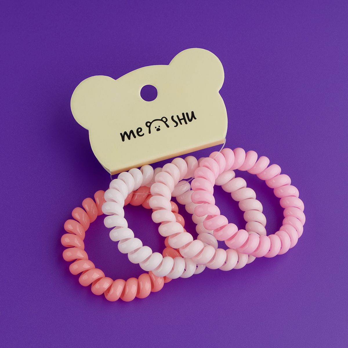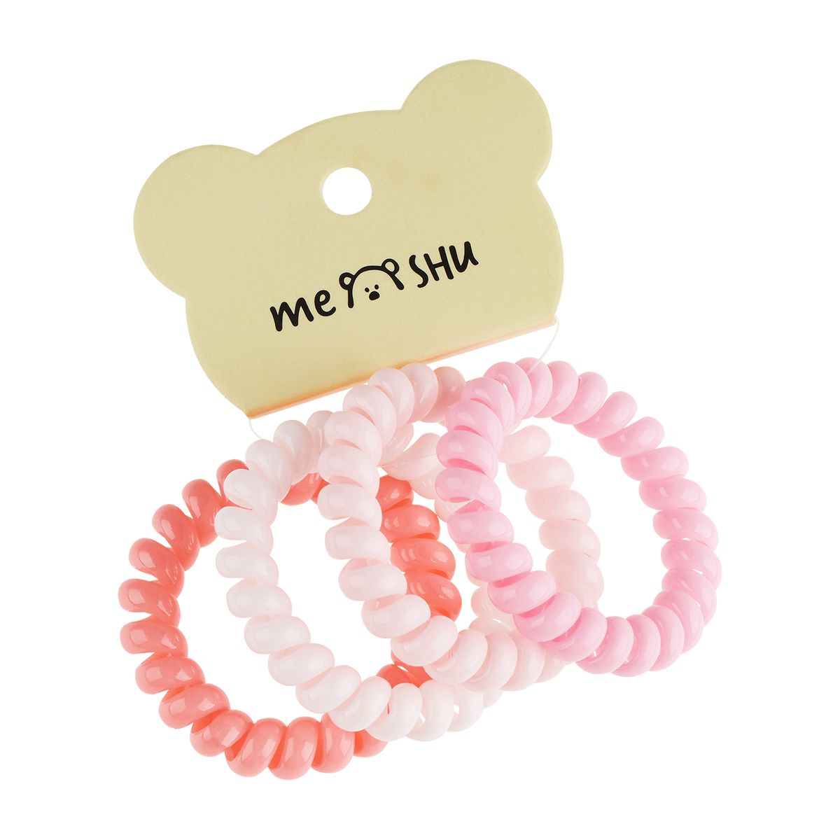 Резинки для волос MESHU, пружинки, розовые ассорти, 4шт., диаметр 4,5см, европодвес