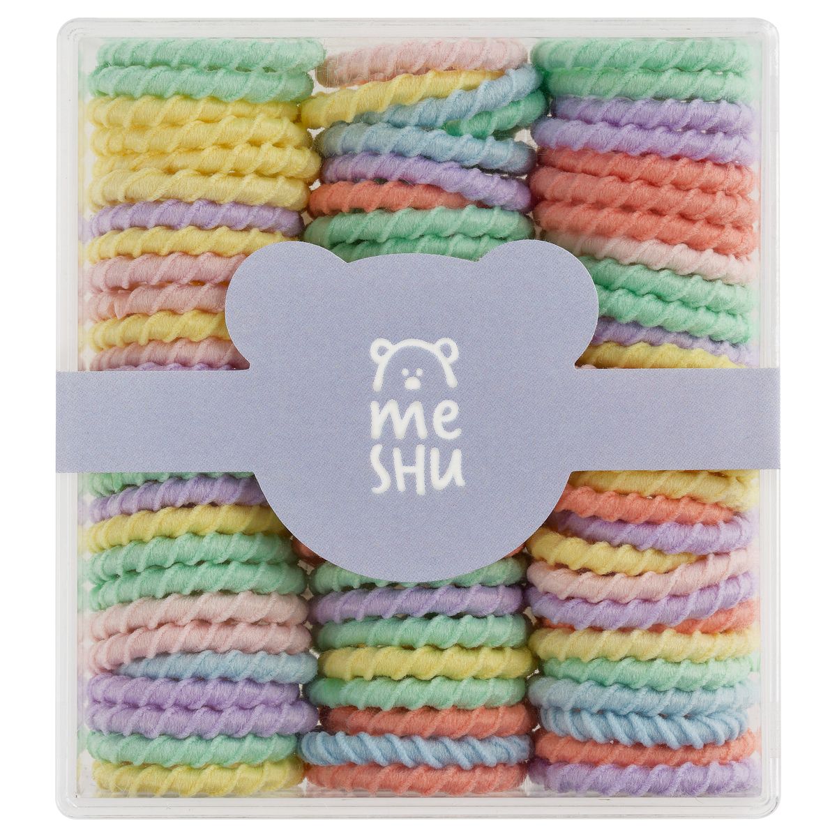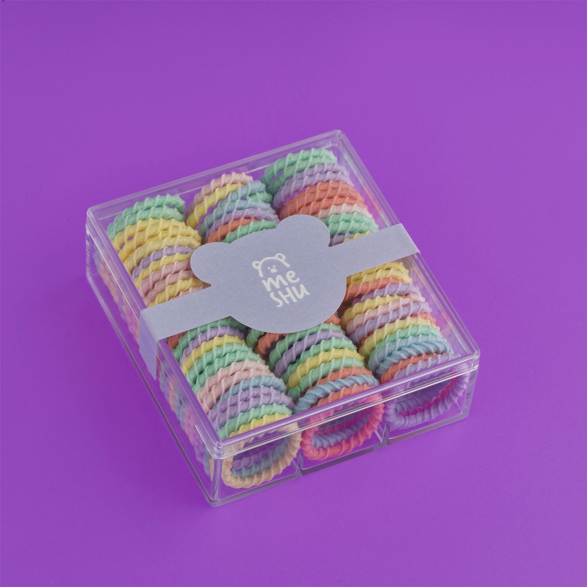 Резинки для волос MESHU, тонкие, пастельные ассорти, диаметр 2см, 90шт., пластиковый бокс