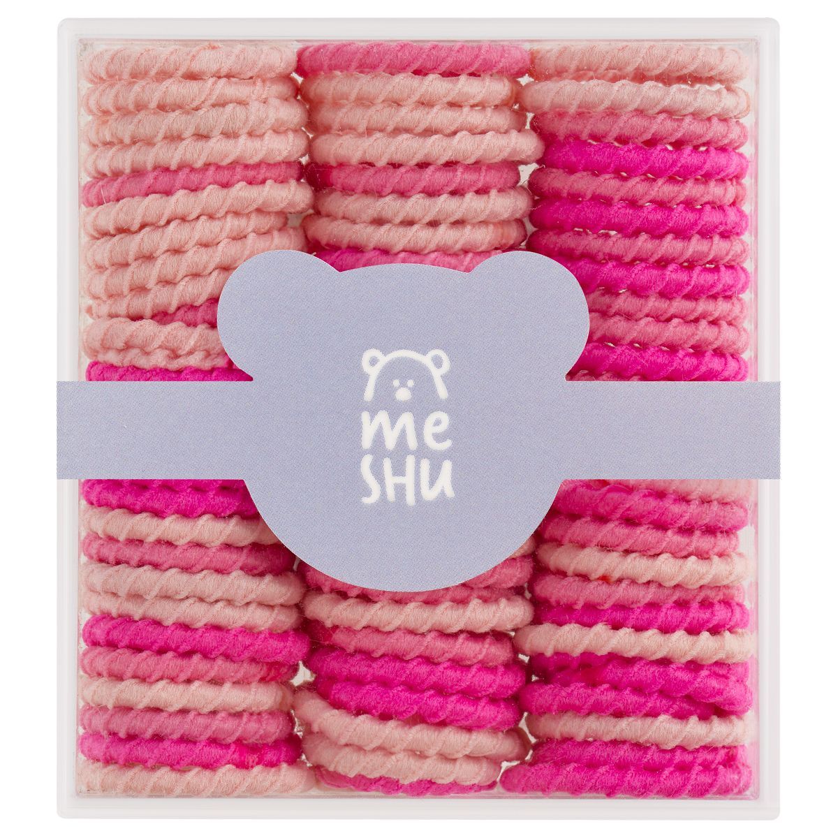 Резинки для волос MESHU, тонкие, розовые ассорти, 90шт., пластиковый бокс