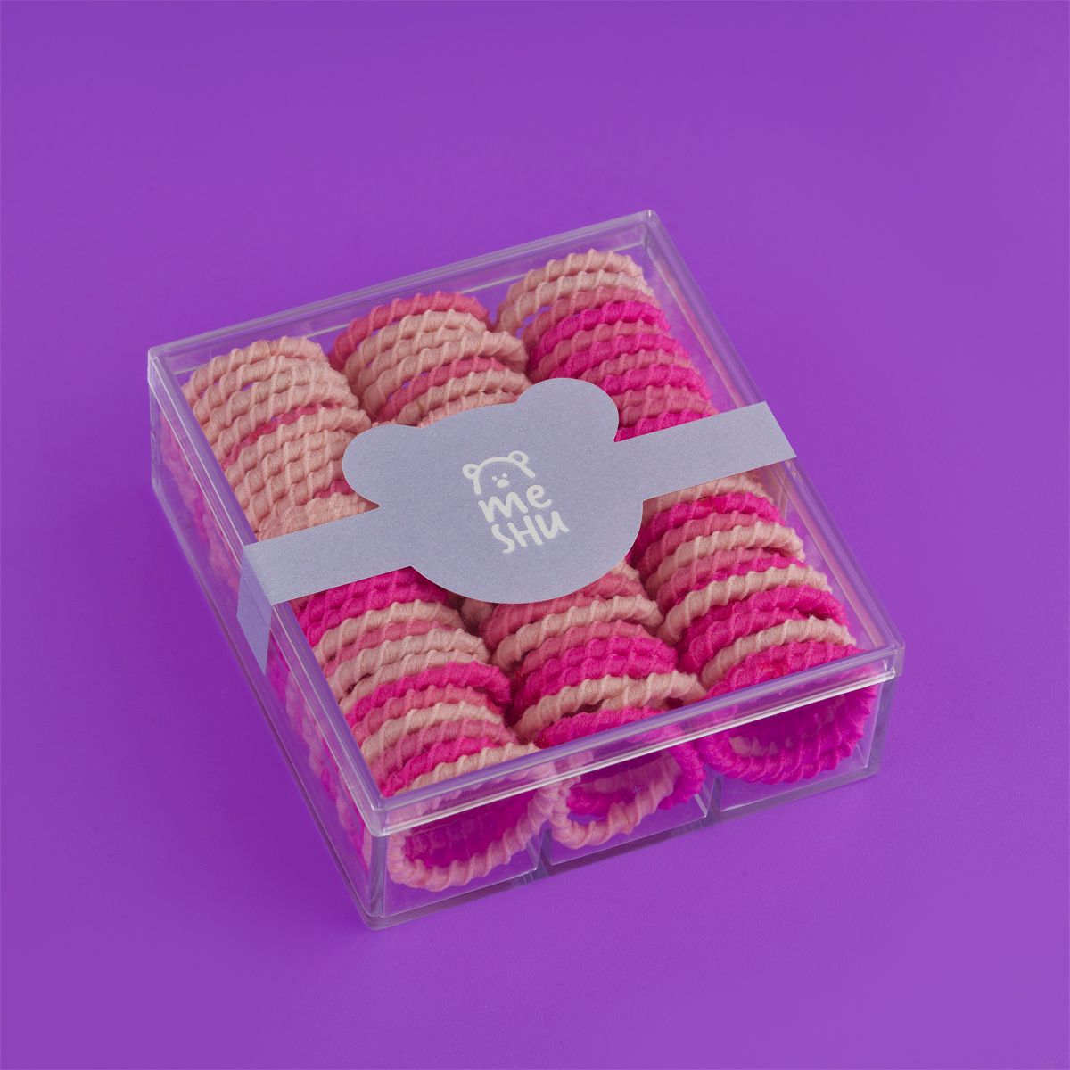 Резинки для волос MESHU, тонкие, розовые ассорти, диаметр 2см, 90шт., пластиковый бокс