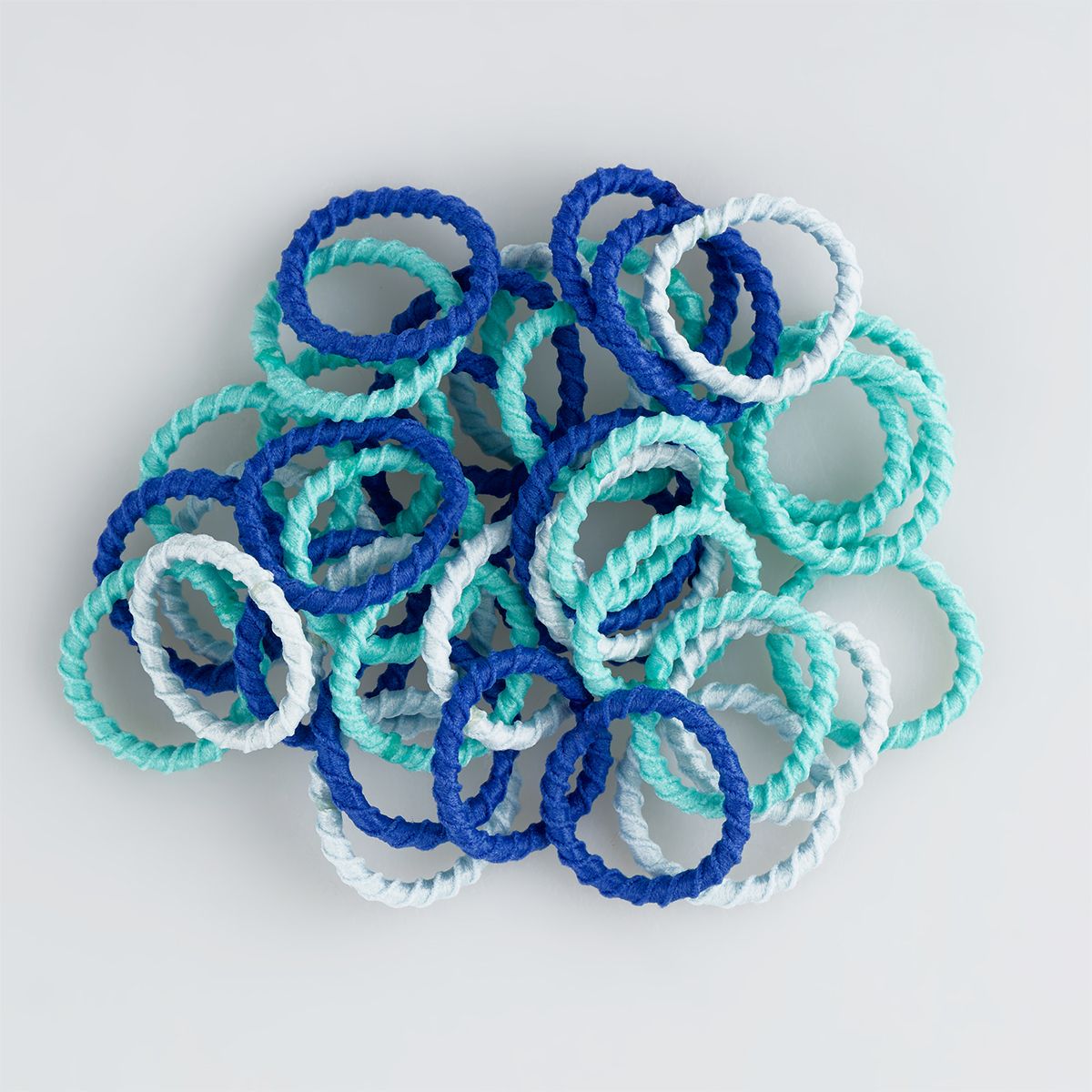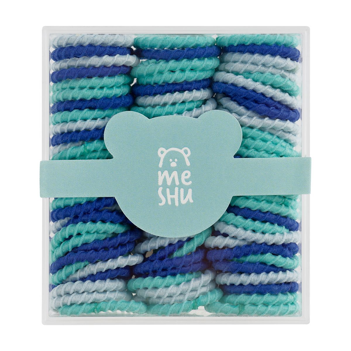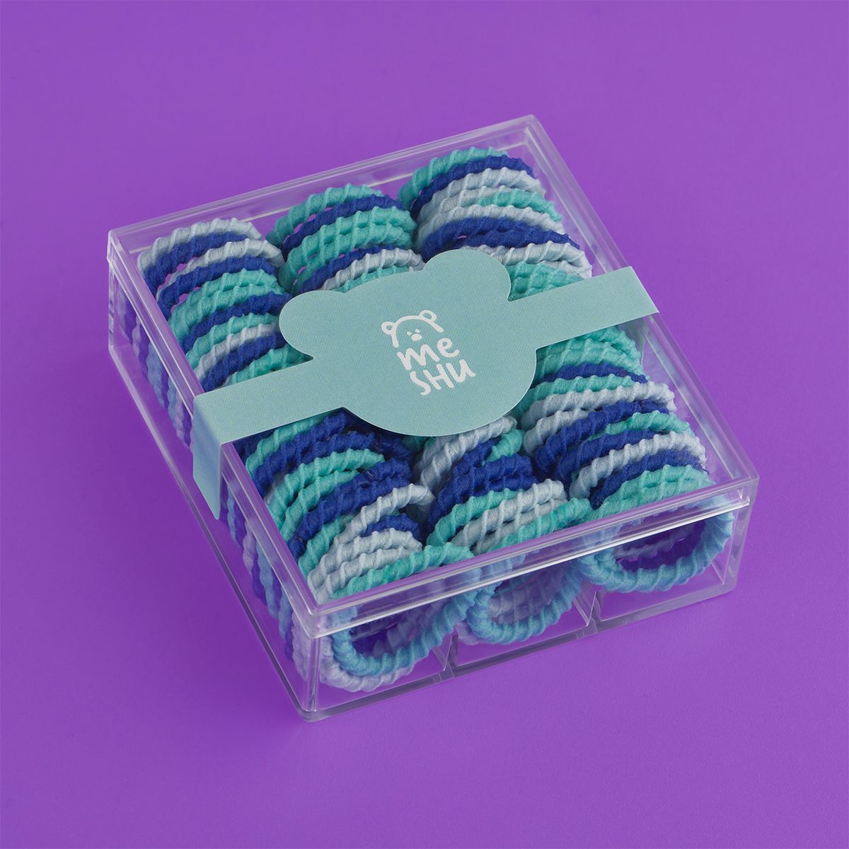 Резинки для волос MESHU, тонкие, синие ассорти, диаметр 2см, 90шт., пластиковый бокс