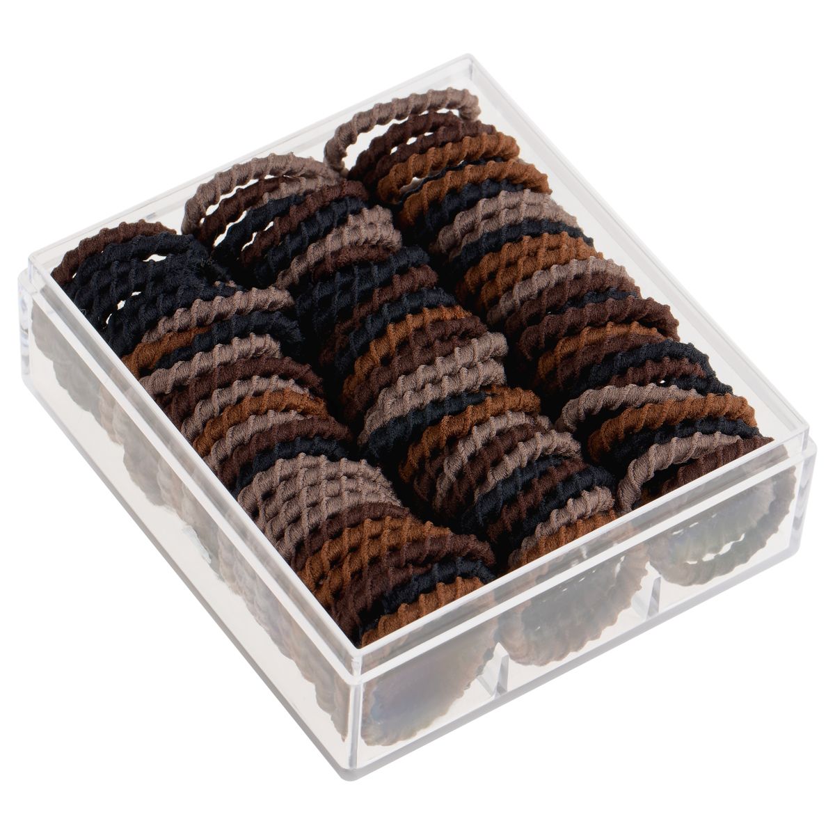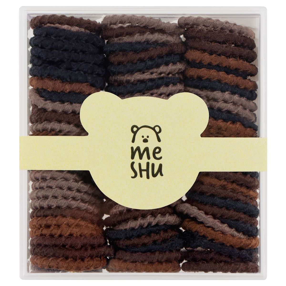 Резинки для волос MESHU, тонкие, темные ассорти, диаметр 2см, 90шт., пластиковый бокс