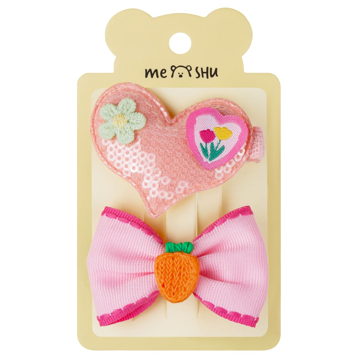 Заколки для волос MESHU, прищепки текстильные, ассорти, 2шт., европодвес