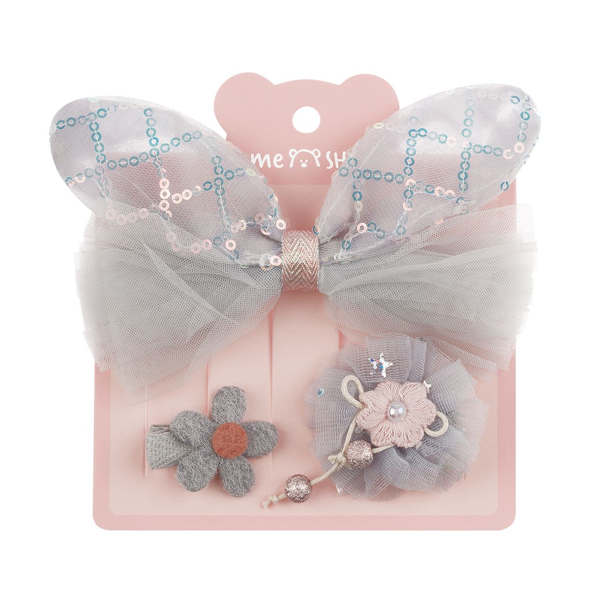 Заколки для волос MESHU с топперами, 3шт., голубой, европодвес