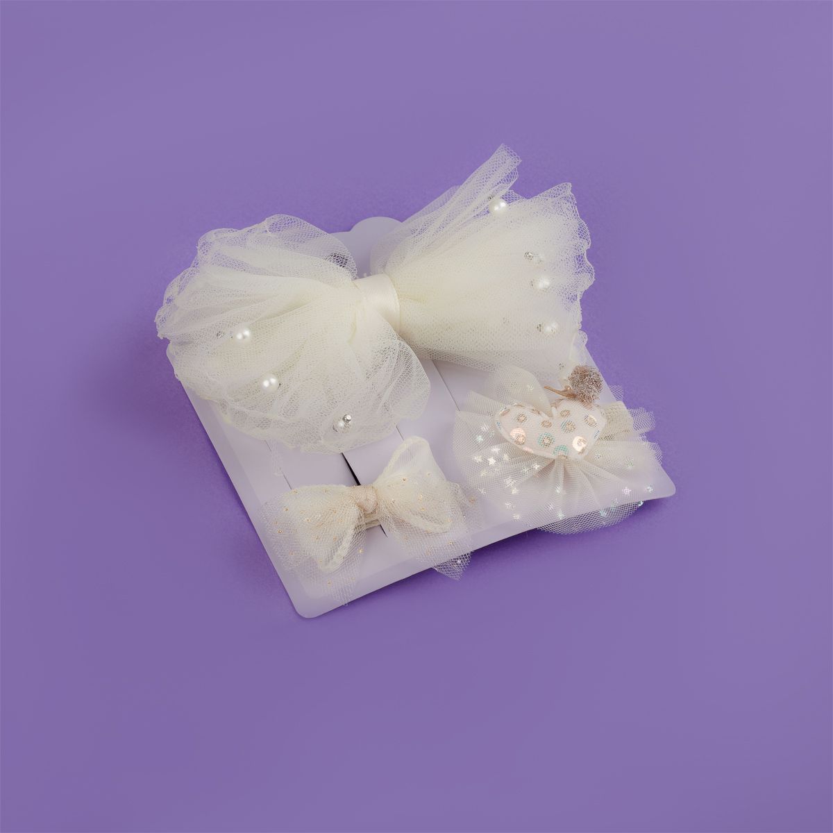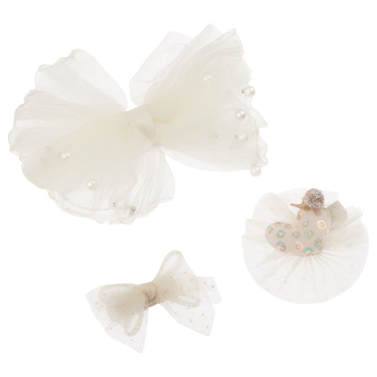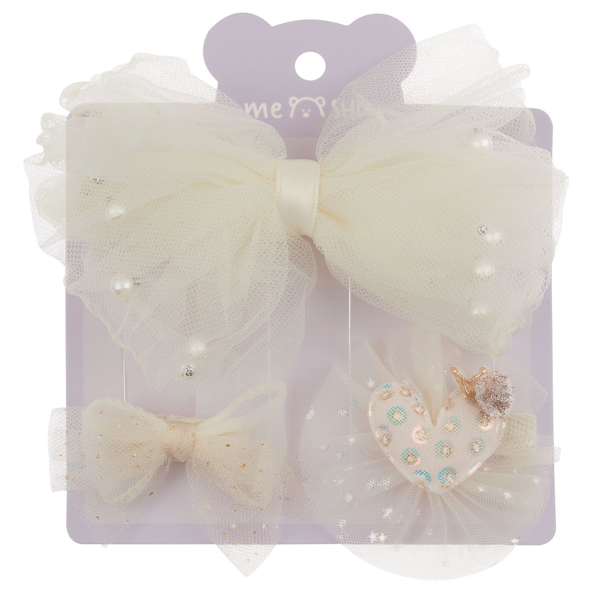 Заколки для волос MESHU с топперами, 3шт., светло-бежевый, европодвес