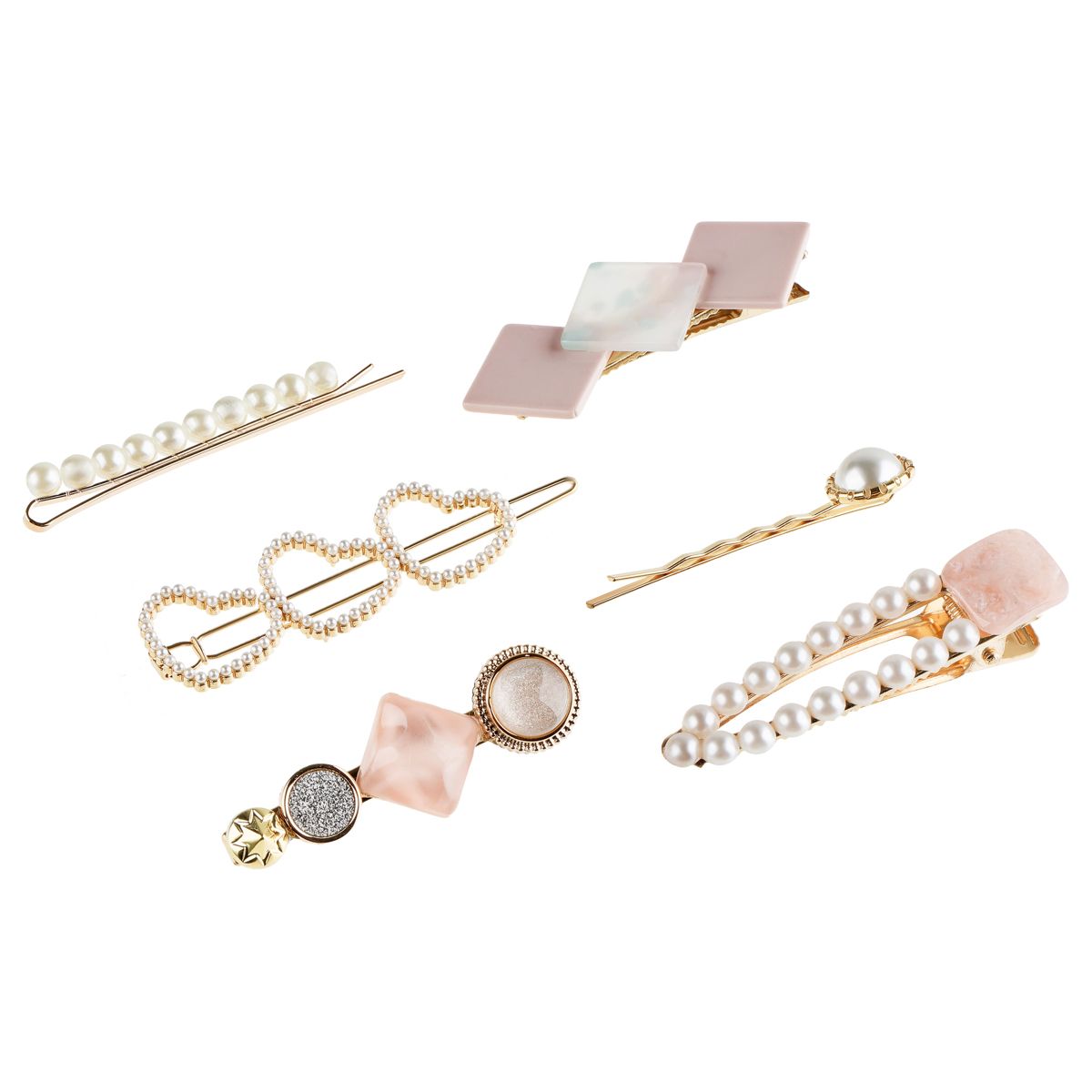 Заколки для волос MESHU, цвет розовый жемчуг, 6шт., европодвес