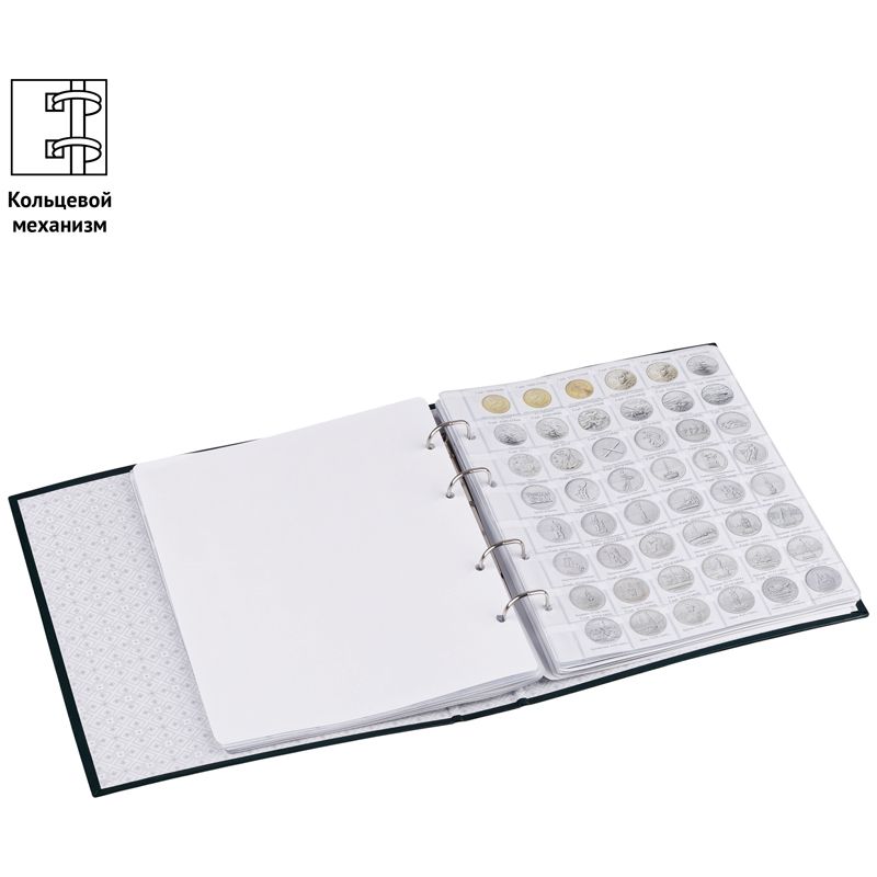 Альбом для монет OfficeSpace "Памятные монеты РФ", 230*265, на кольцах, 13л., перечень монет, ламинированный