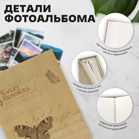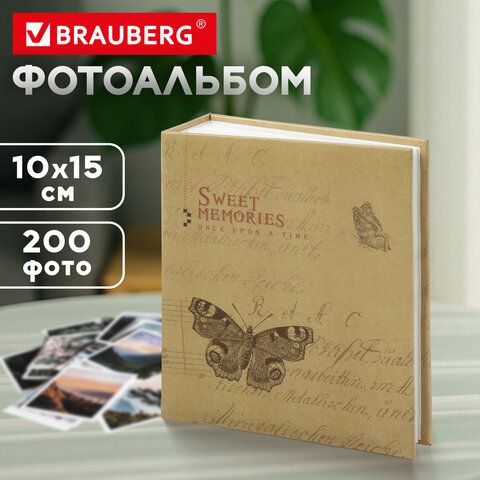 Фотоальбом BRAUBERG "Бабочка, крафт" на 200 фото 10х15 см, твердая обложка, термосварка, 391164