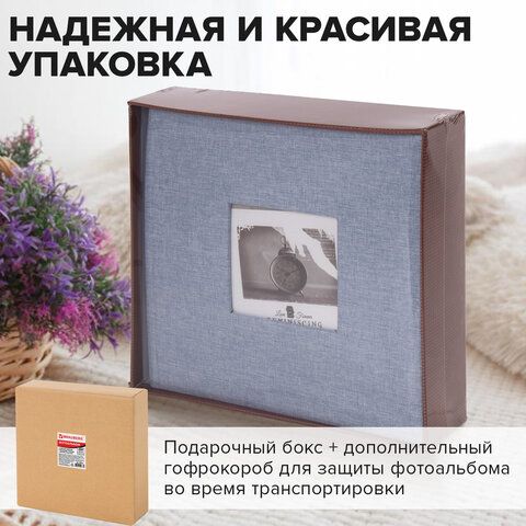 Фотоальбом BRAUBERG "Джинс" на 200 фото 10х15 см, ткань, бумажные страницы, переплет, бокс, 391173