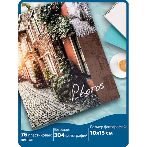 Фотоальбом BRAUBERG "Итальянские улочки" на 304 фото 10х15 см, твердая обложка, термосклейка, 391167