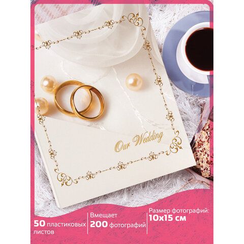 Фотоальбом BRAUBERG "Кольца и жемчуг" на 200 фото 10х15 см, твердая обложка, переплет, бокс, 391151