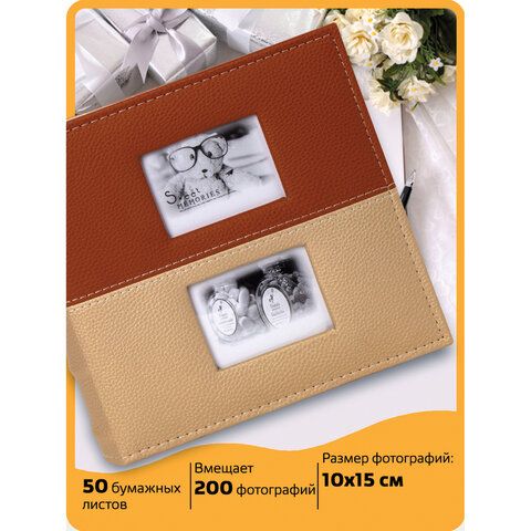 Фотоальбом BRAUBERG "Mirror" на 200 фото 10х15 см, под кожу, бумажные страницы, бокс, 391184